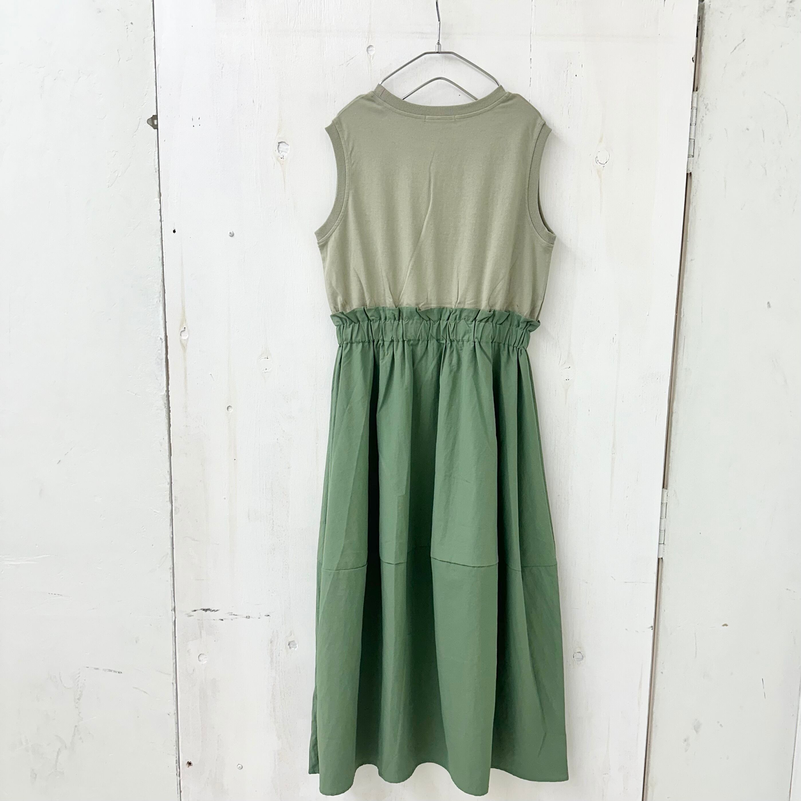 ドライOD 天竺 X ナイロン 切替 スリーブレス ワンピース