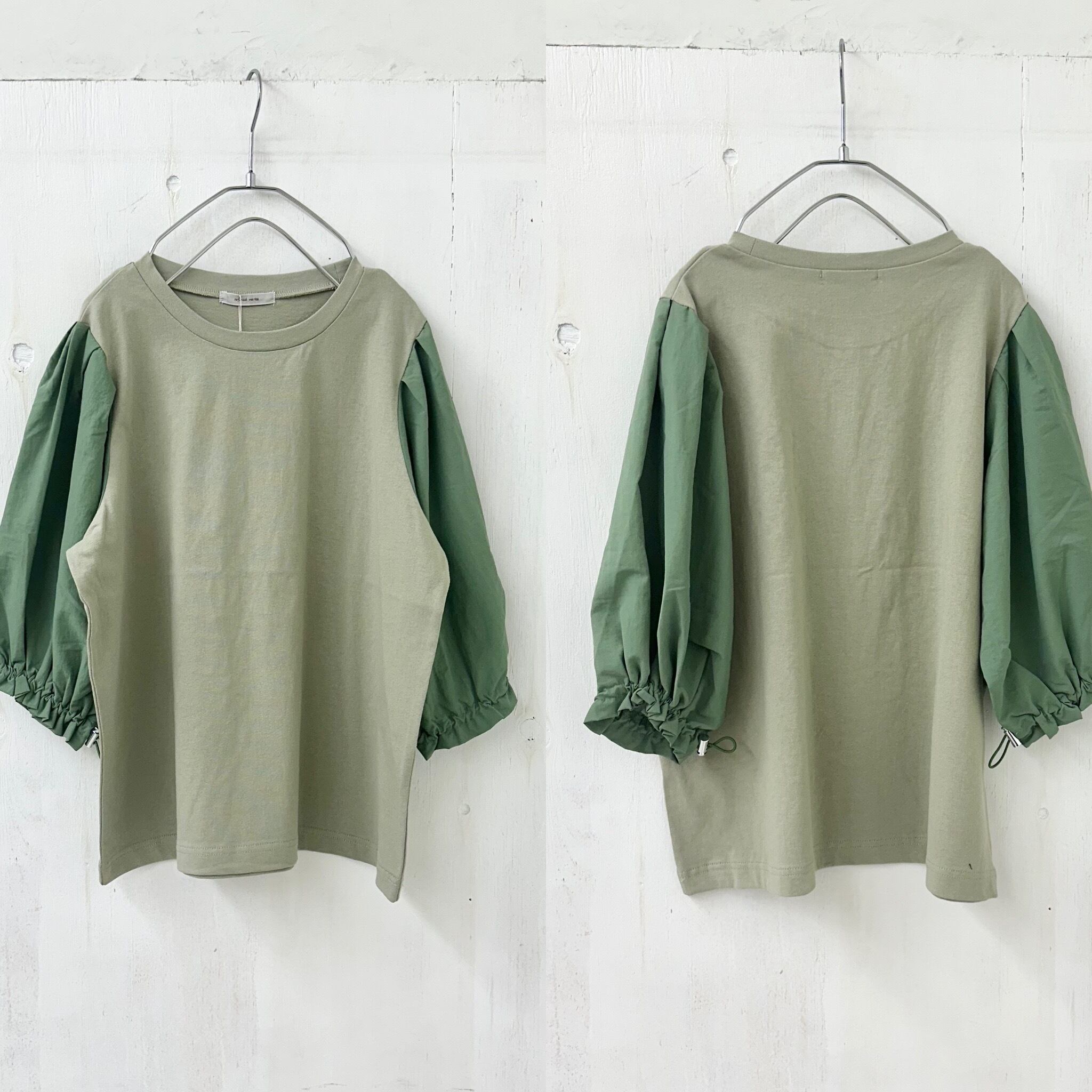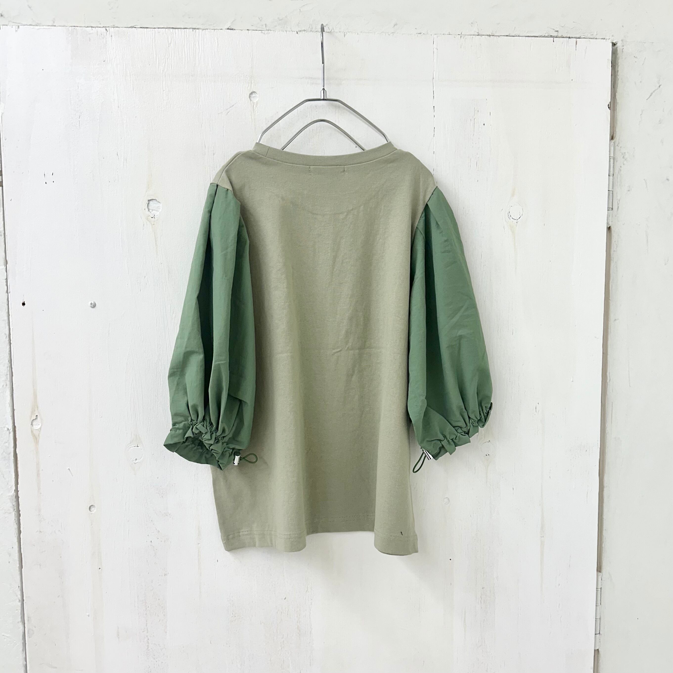 ドライOD 天竺 X ナイロン 切替 バルーン スリーブ プルオーバー