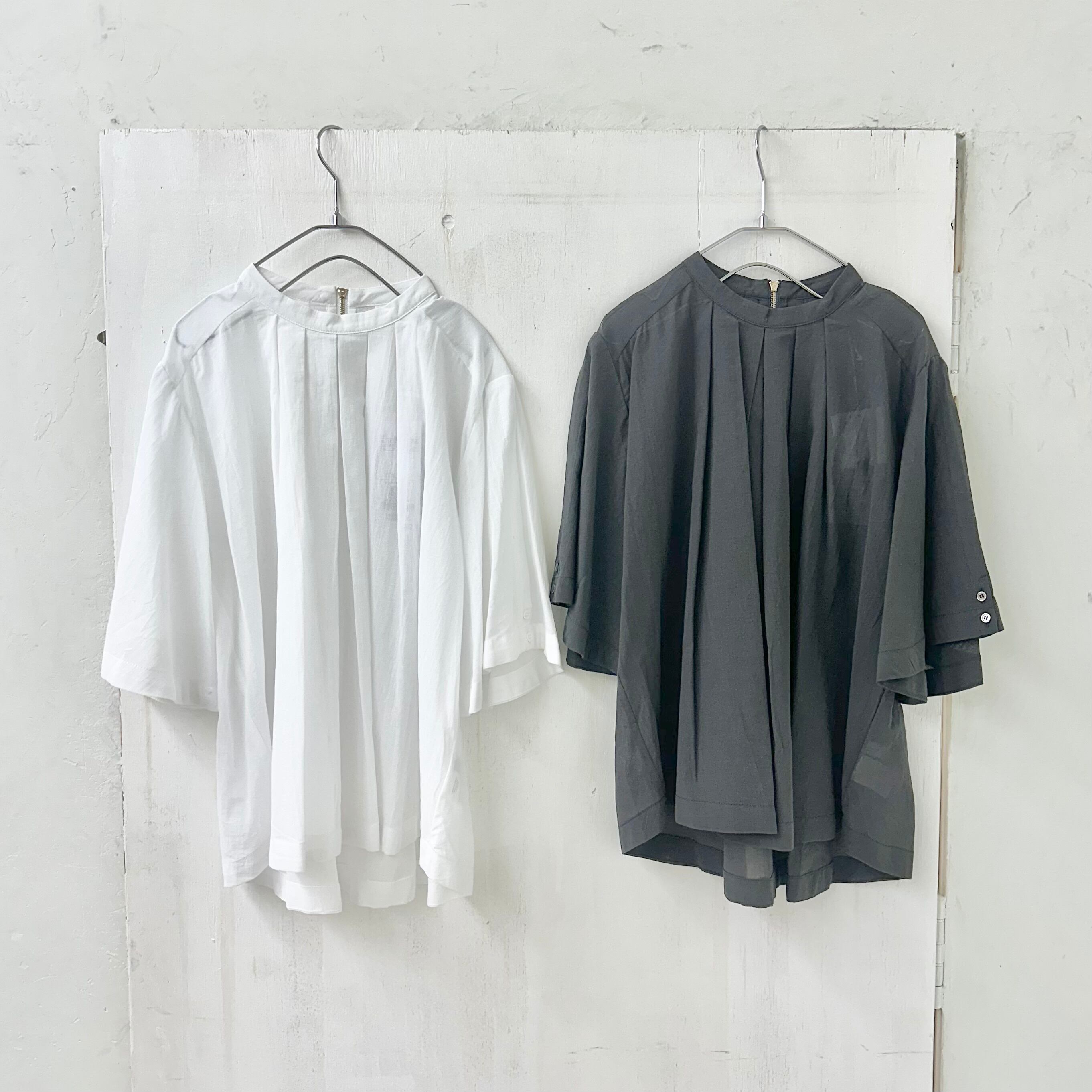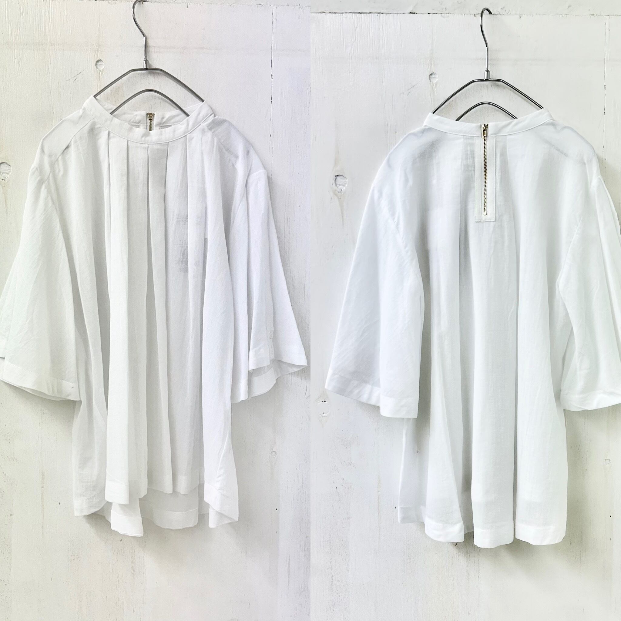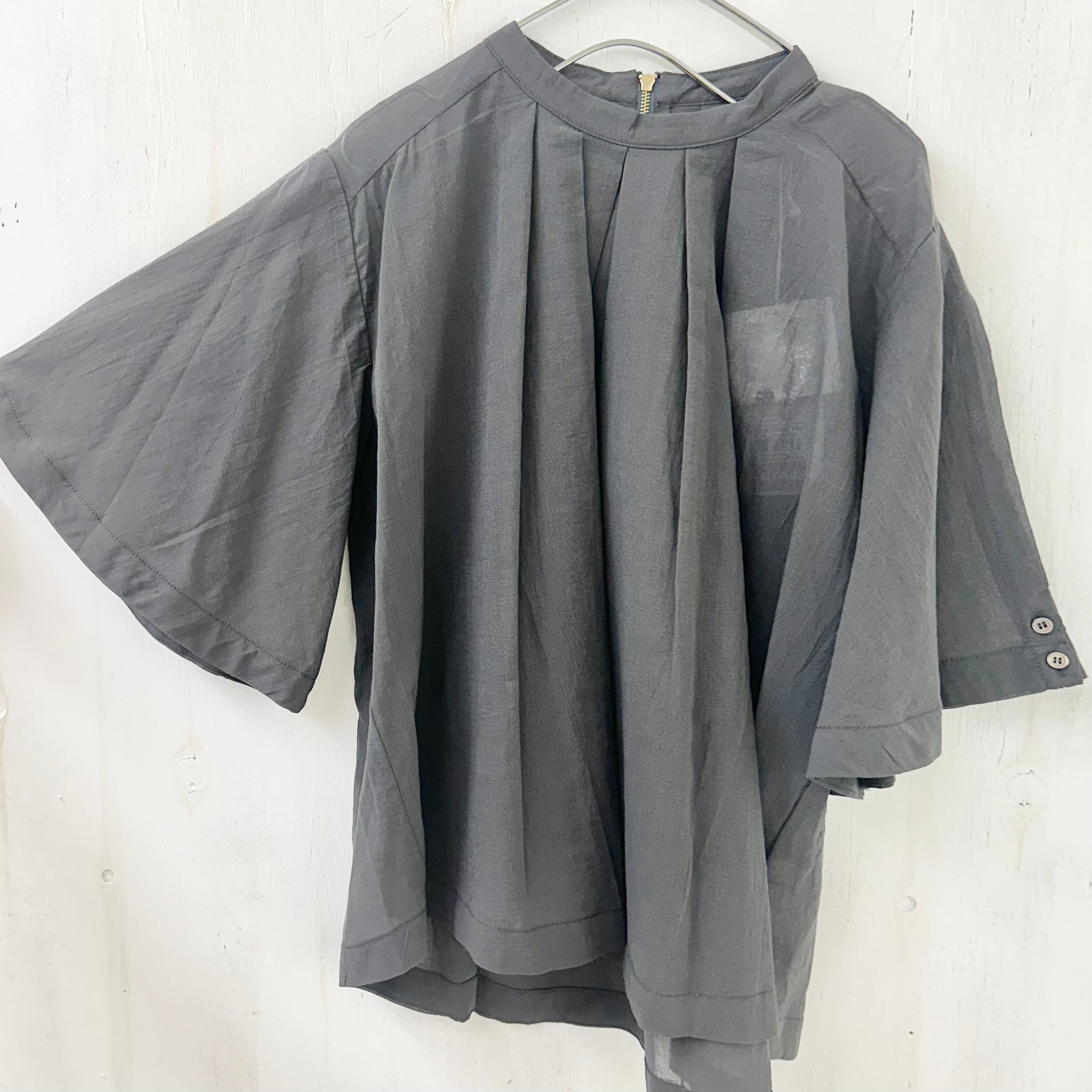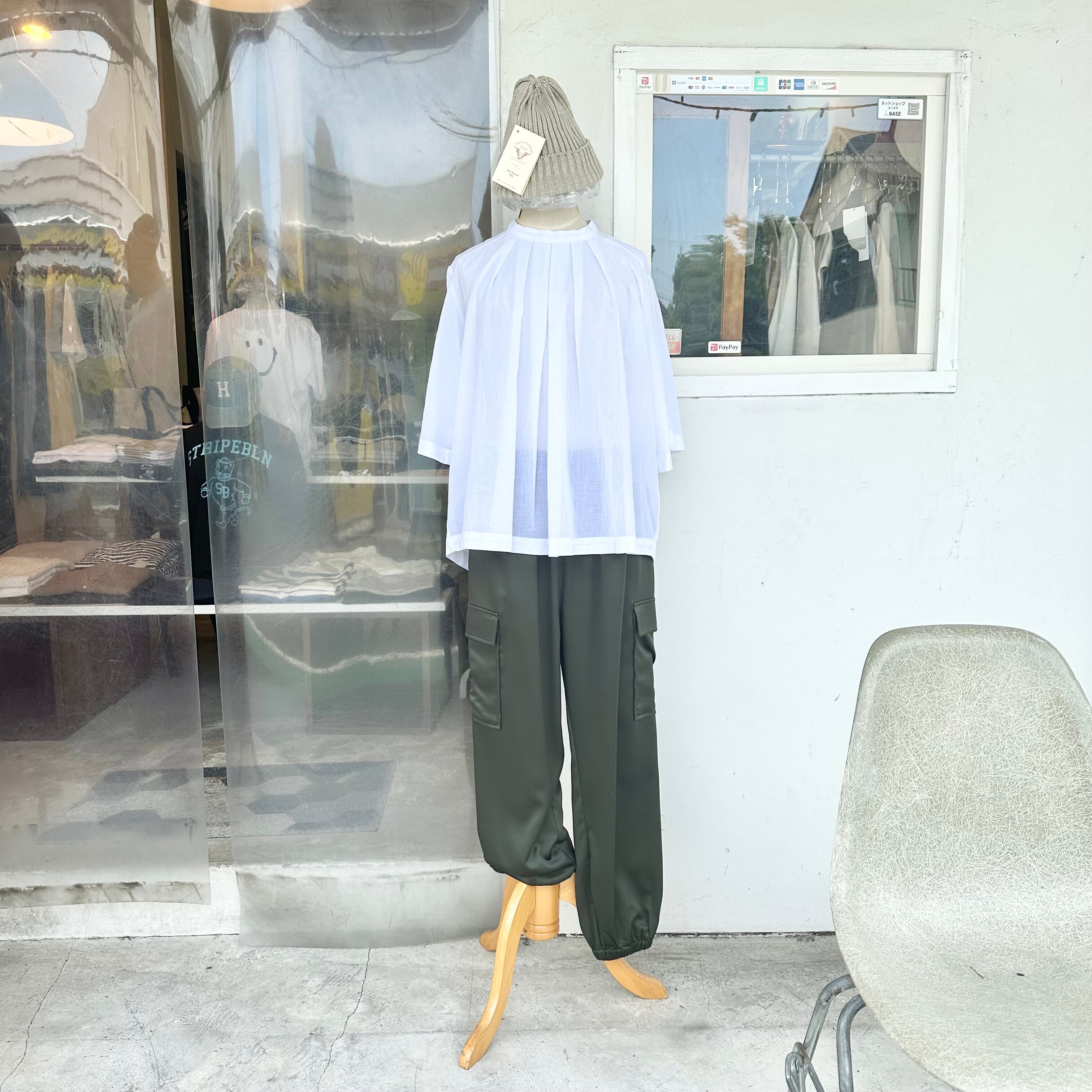 コットン シアー 2WAY スリーブ タック プルオーバー ブラウス