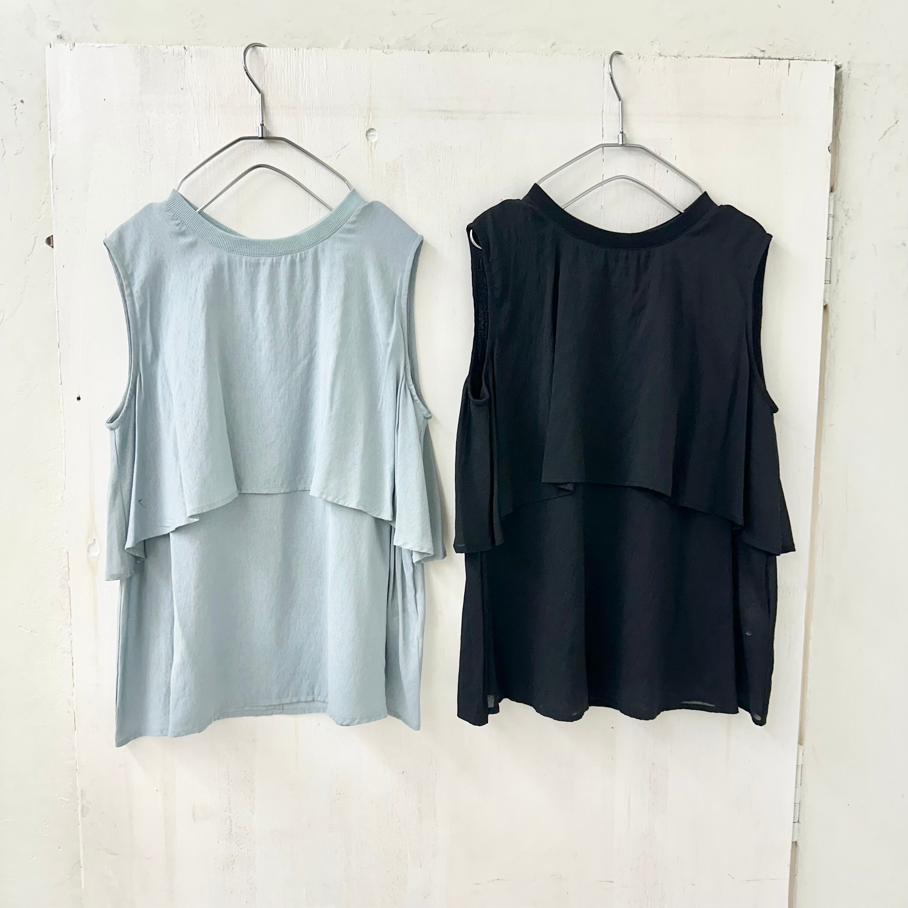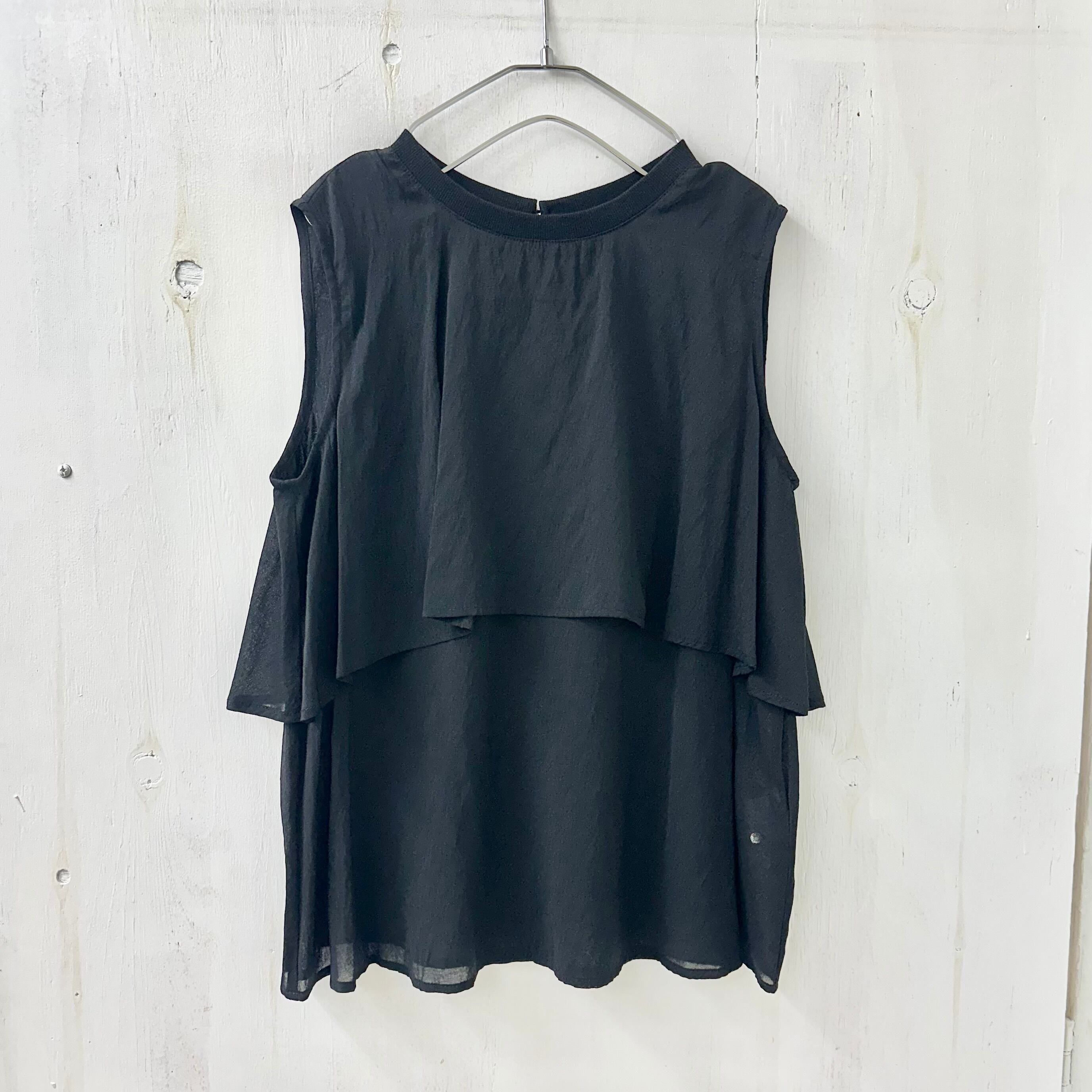シアー メランジ フリル スリーブレス ブラウス / 938-88713