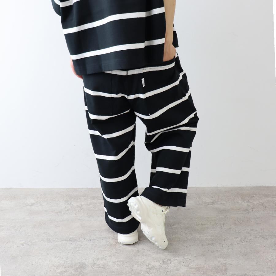 再入荷!【harmonie / アルモニ】20/2 度詰め 天竺 ボーダー ワイド パンツ