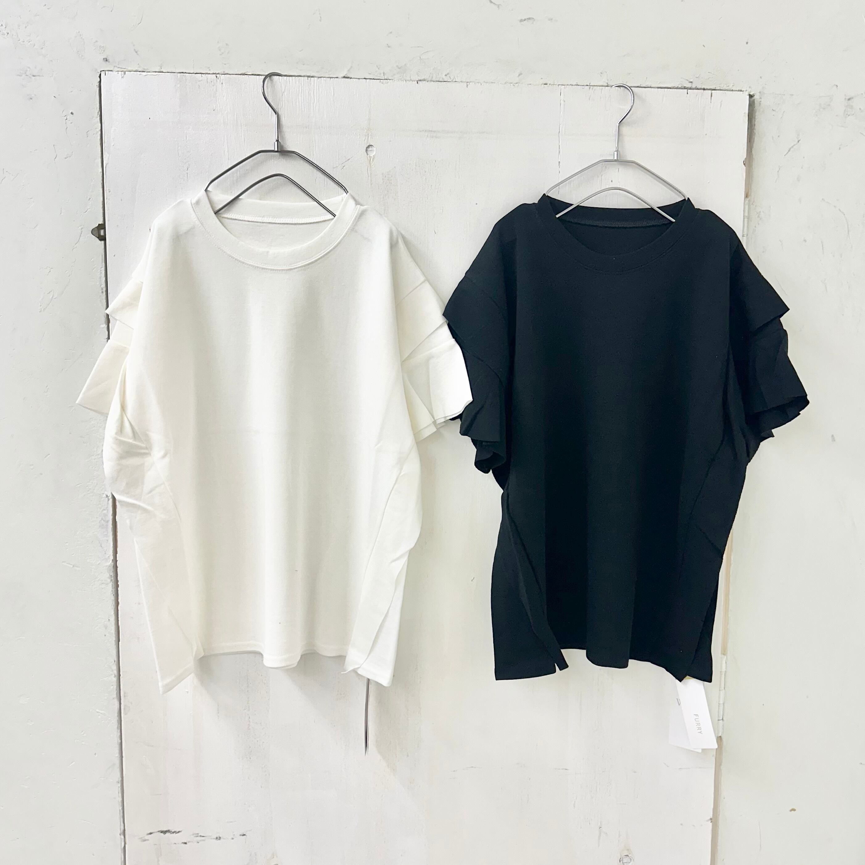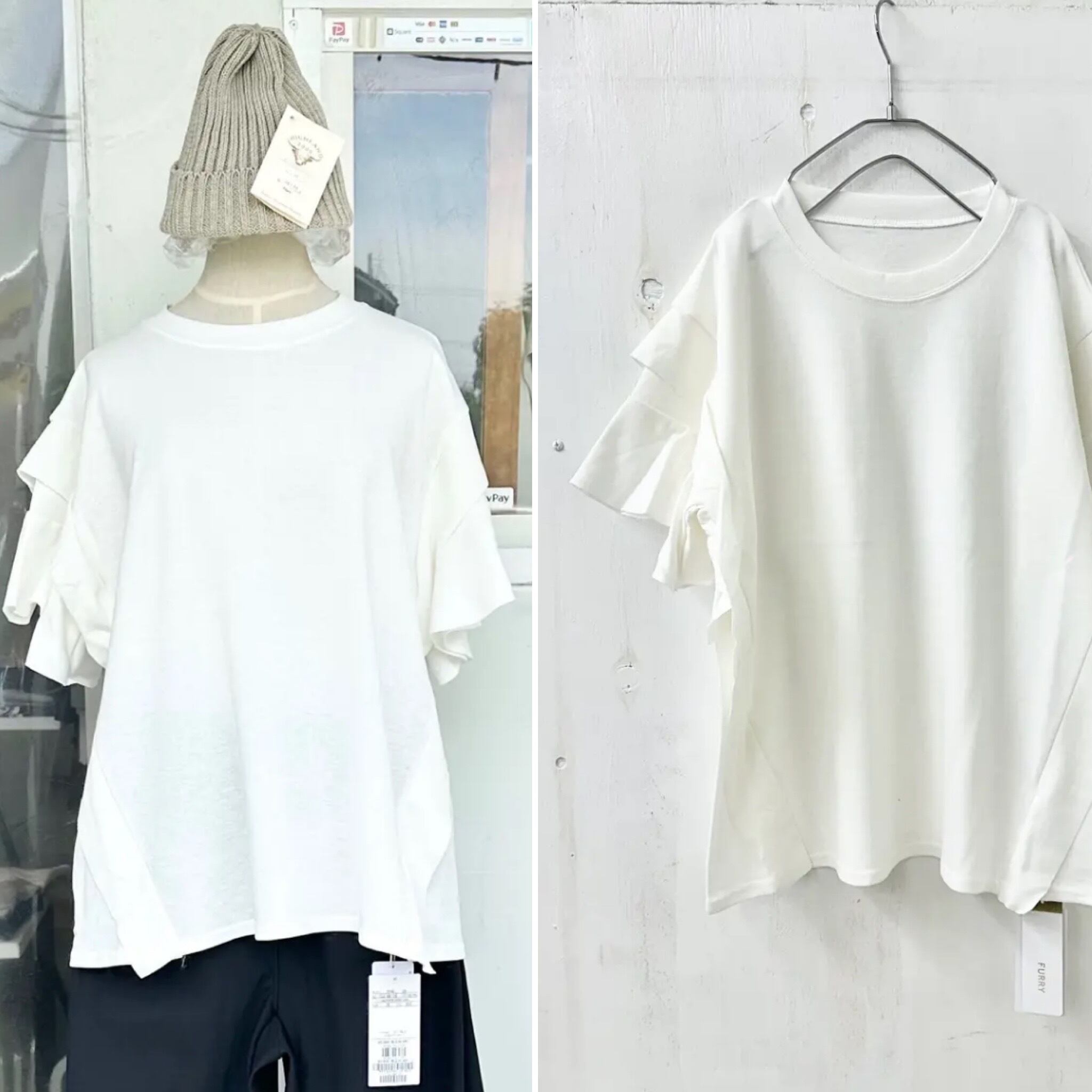 袖のフリルスリーブが可愛いジャージー素材のカットソー