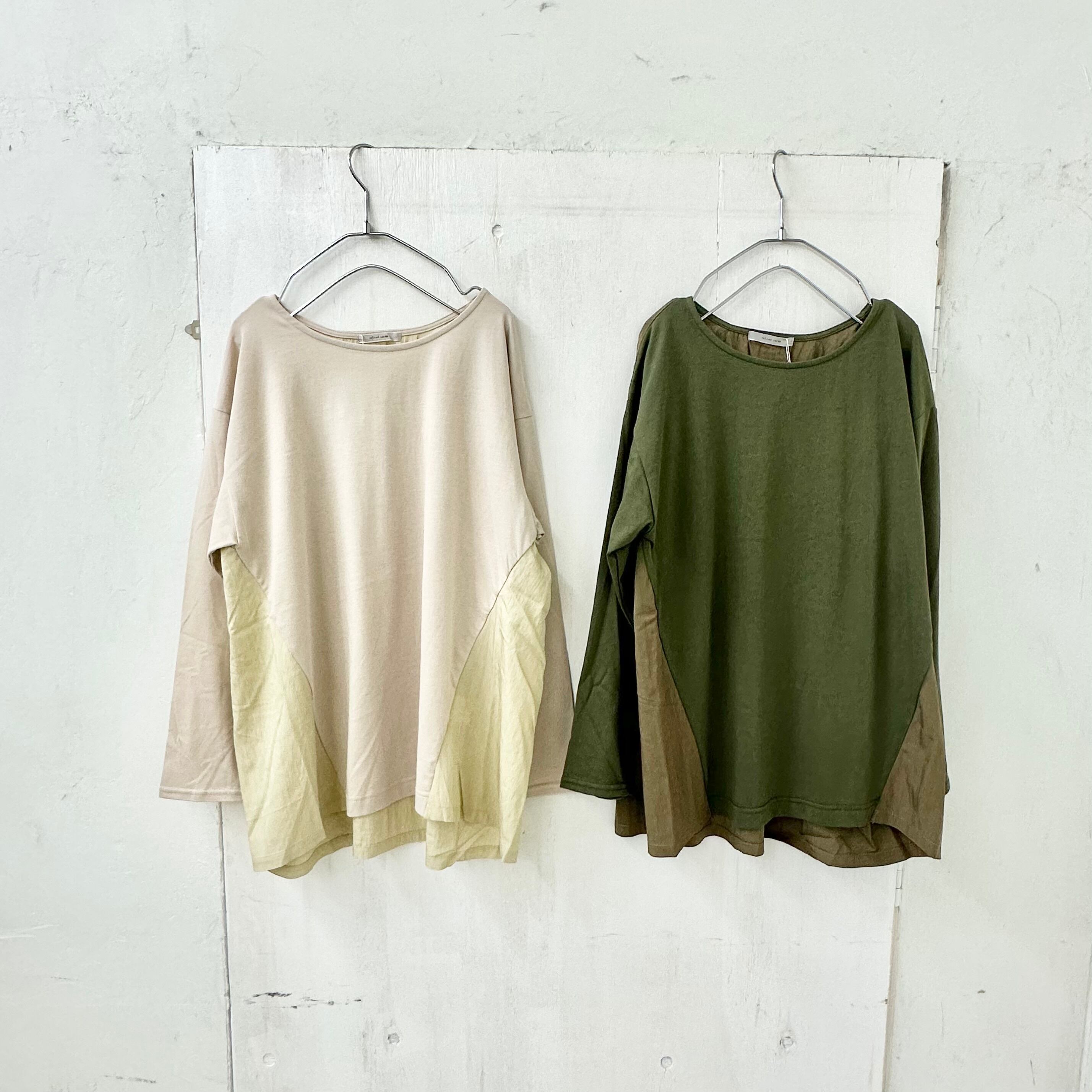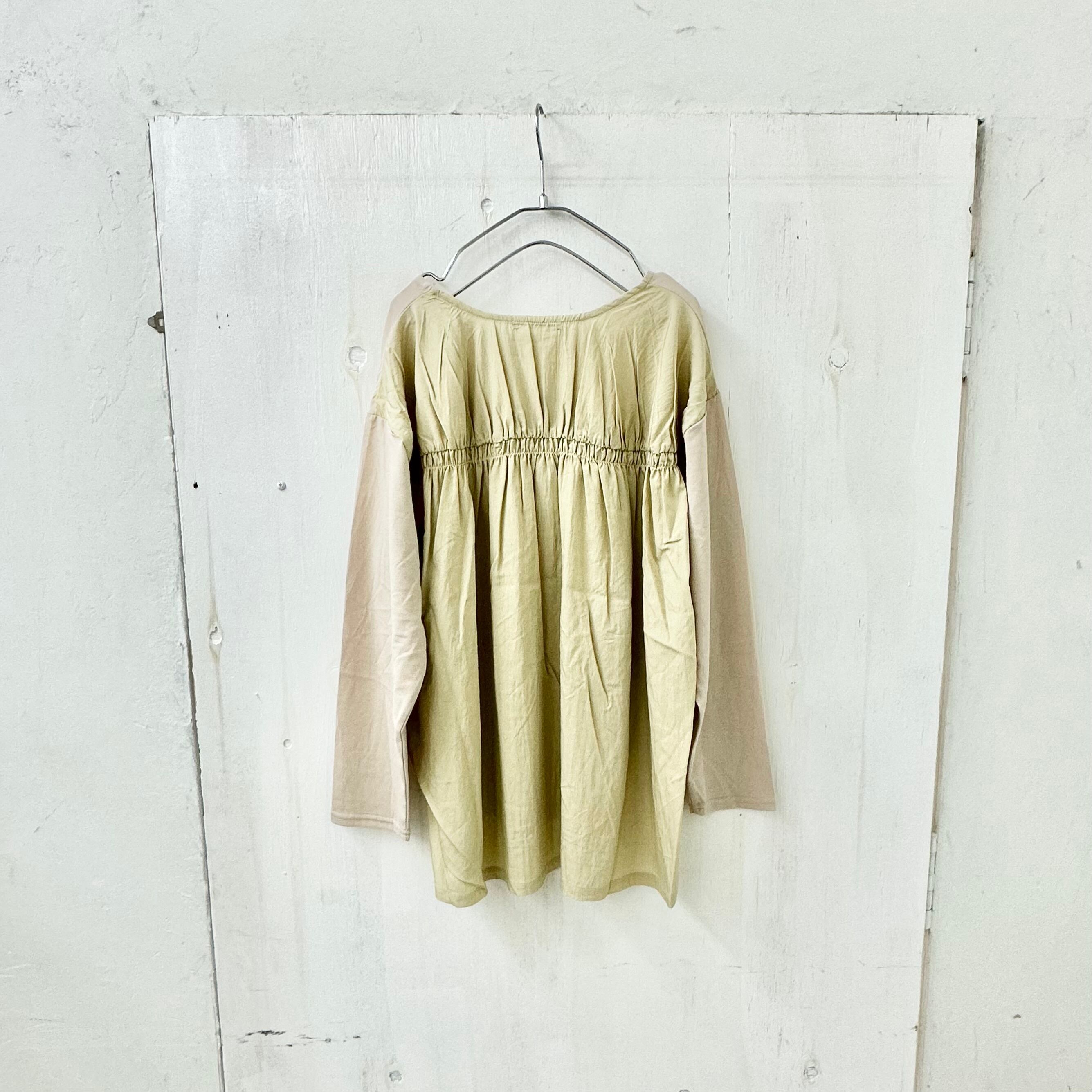 ドライ天竺xレーヨン切替 ヨーク バックギャザー プルオーバー カットソー