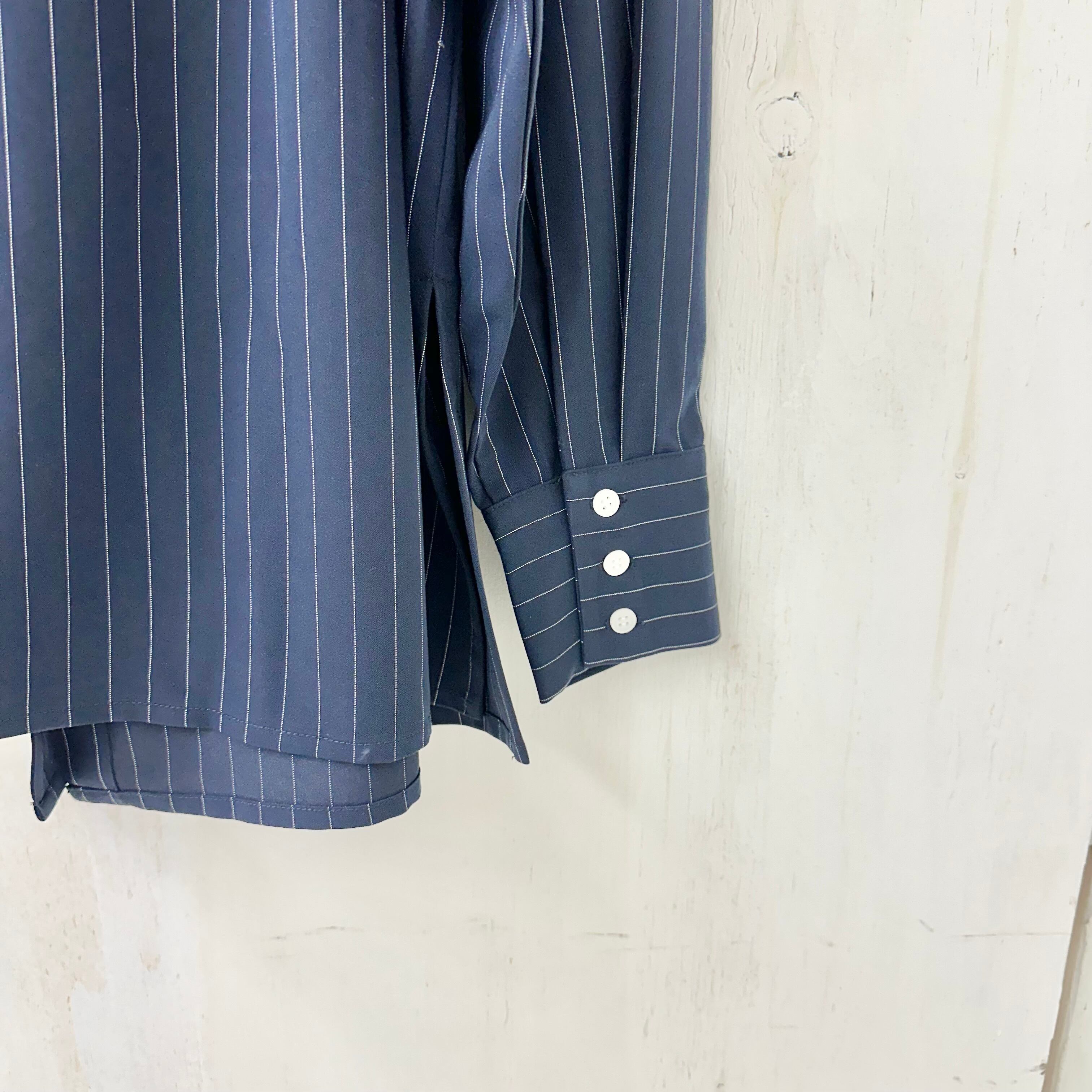 【Audrey and John Wad】T/R ツイル ピンストライプ フリル ブラウス