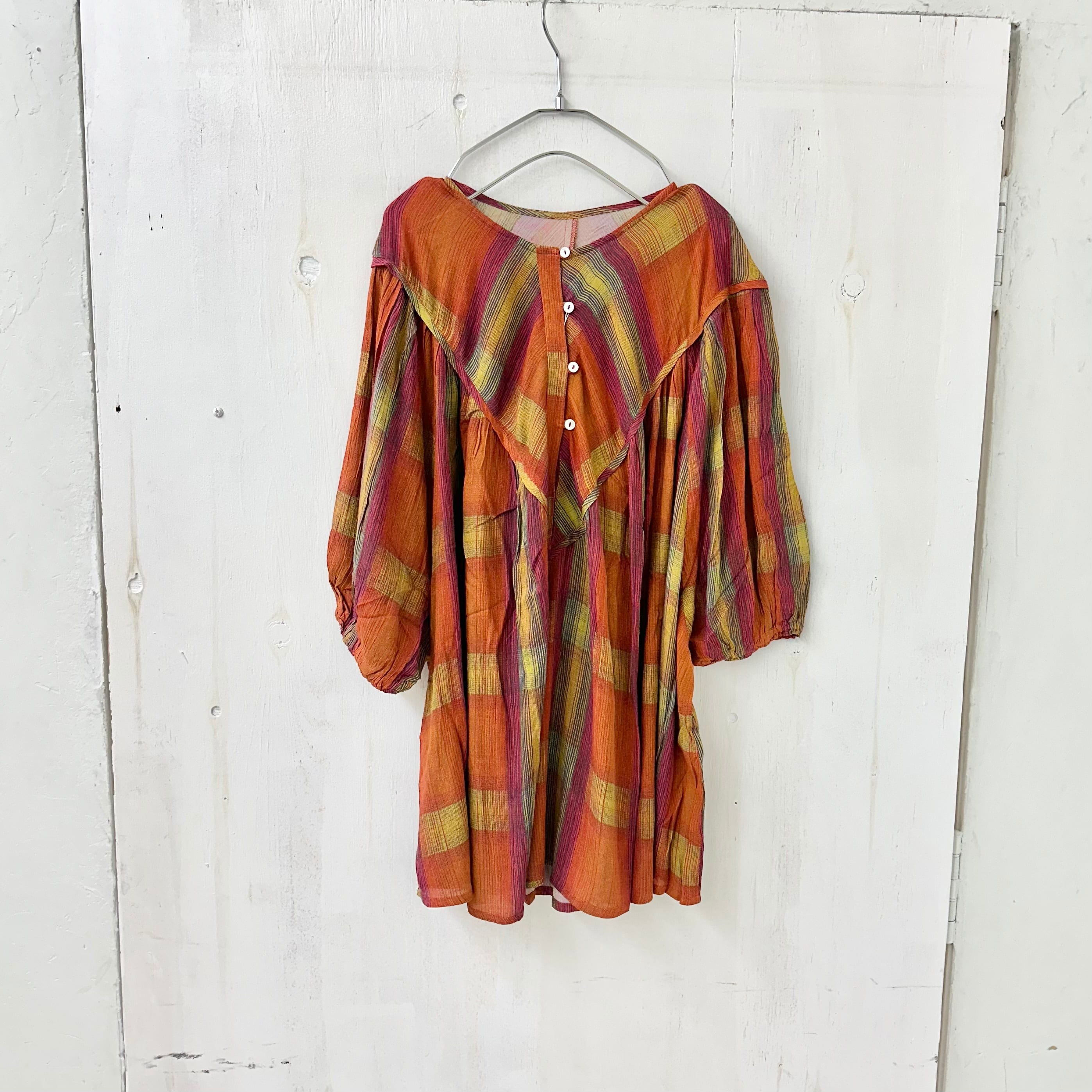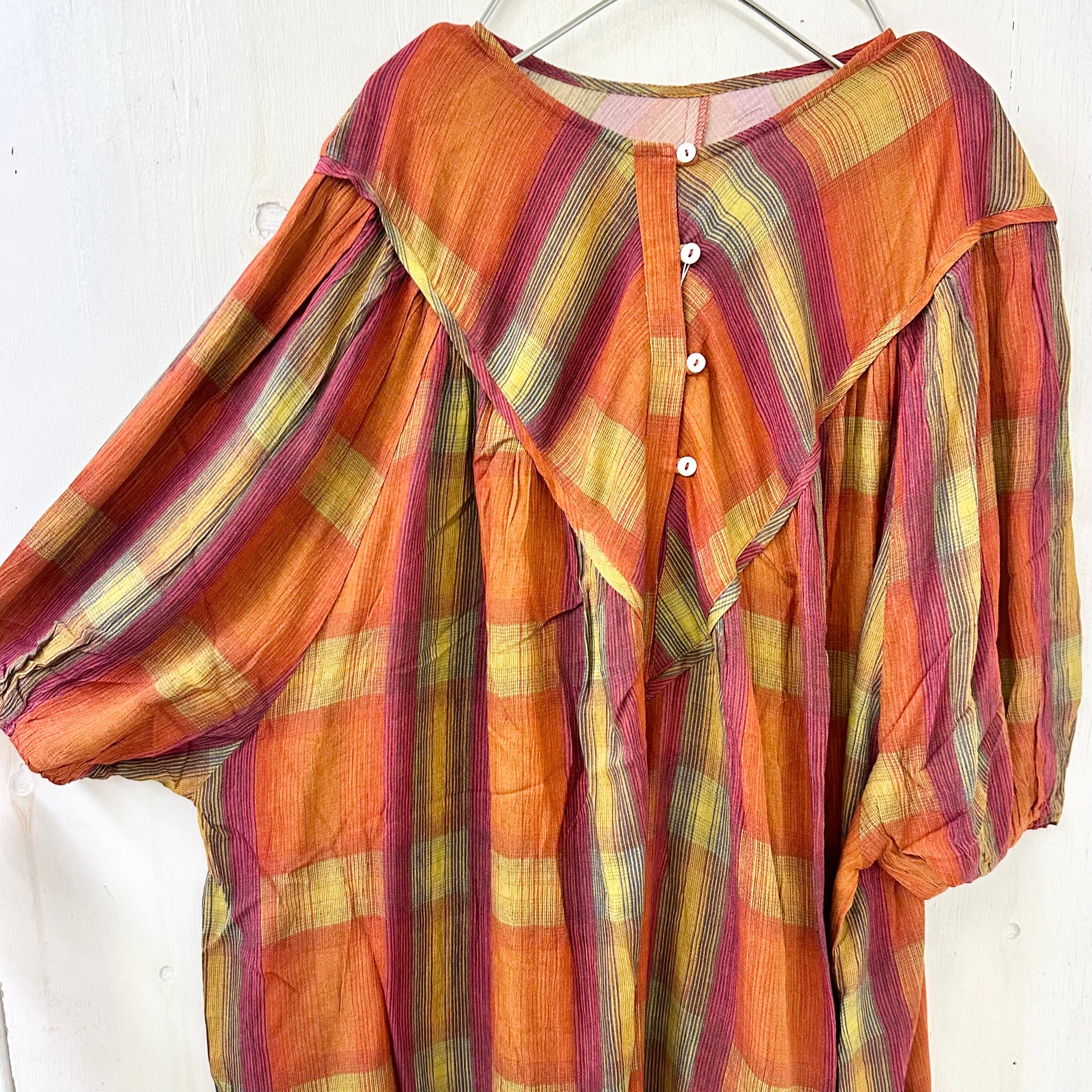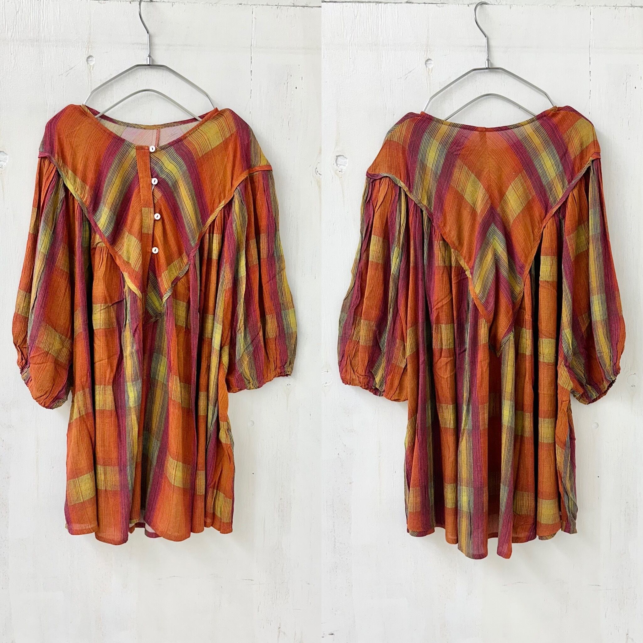 レーヨン チェック シャツ「スモック プルオーバー」BIG シルエット