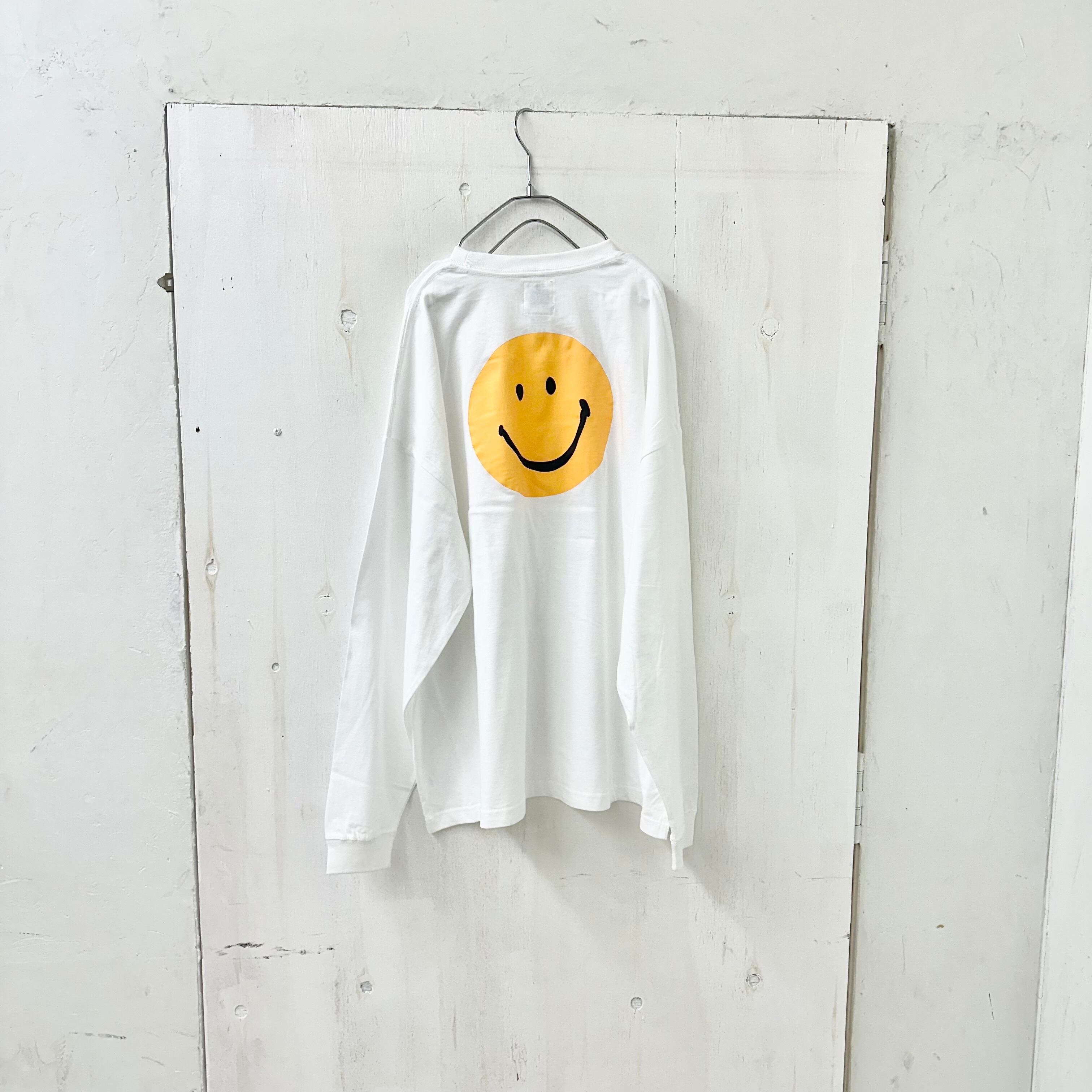 【STRIPE BALLOON】5.6oz BIG シルエット ロンTEE 袖1.8リブ「SMILE」ホワイトxひび割れ "バック プリント"