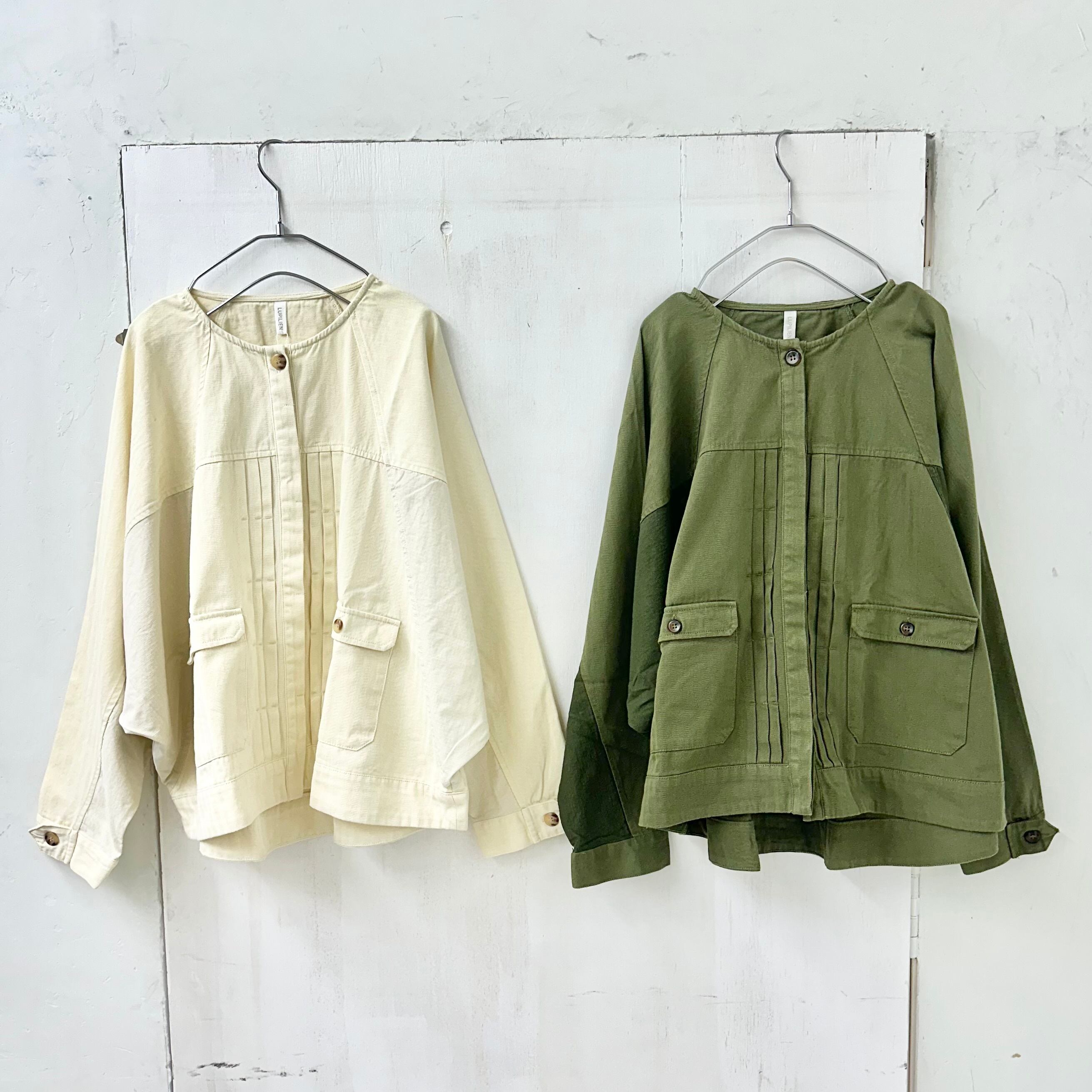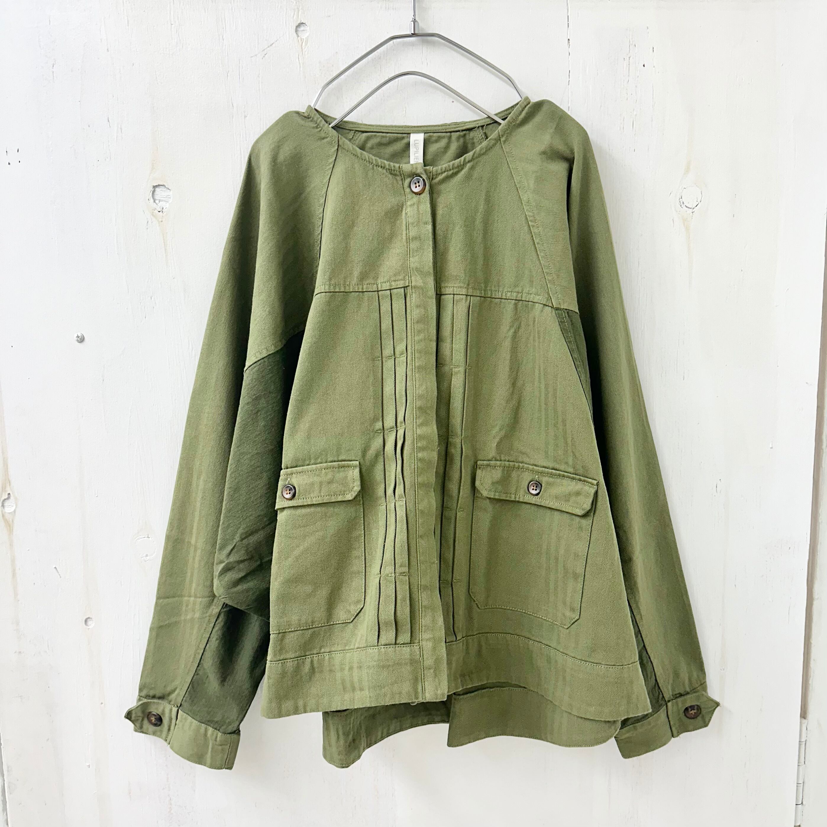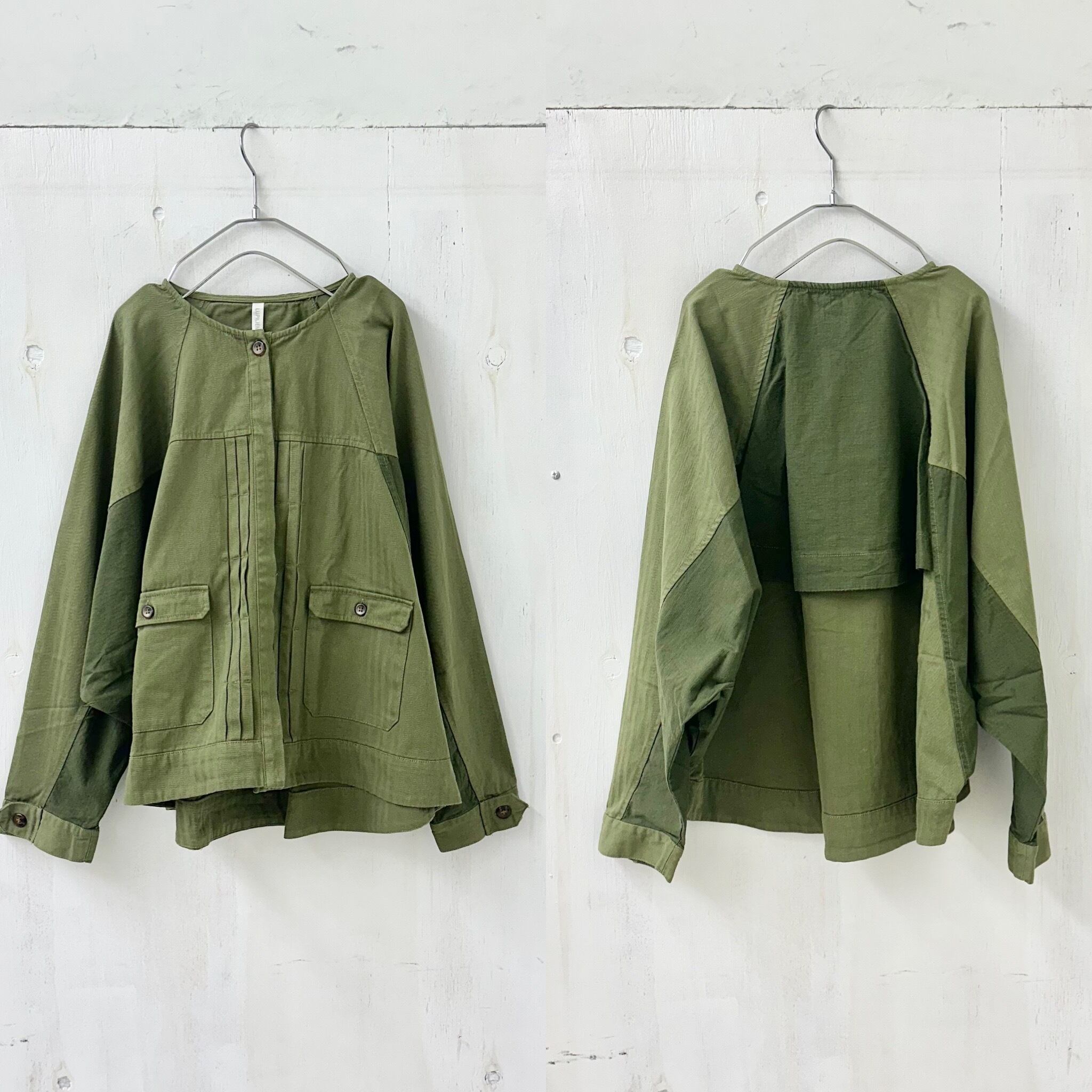ヘリンボーンXリップストップ 切替 ドルマン ミリタリー ジャケット / 409-49350
