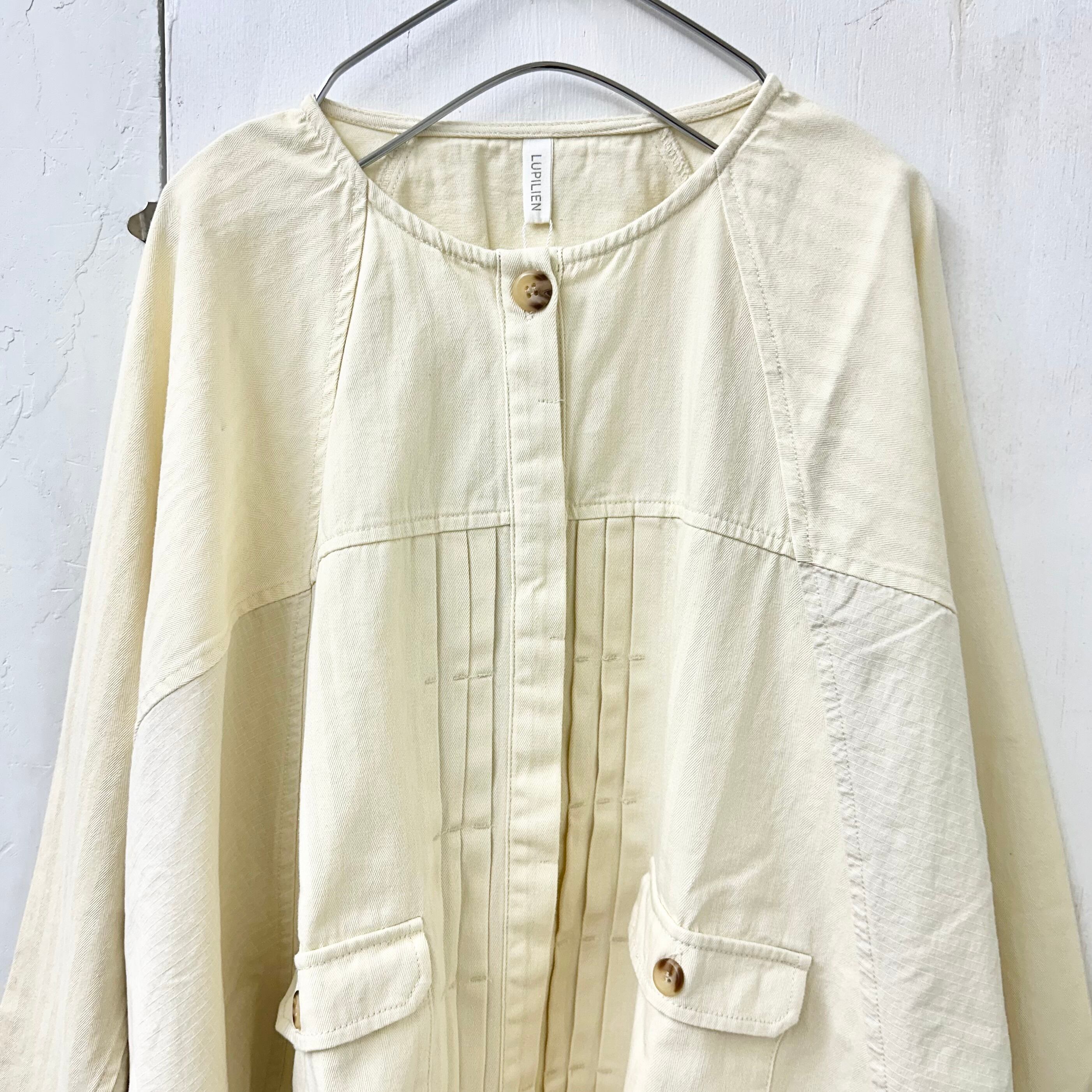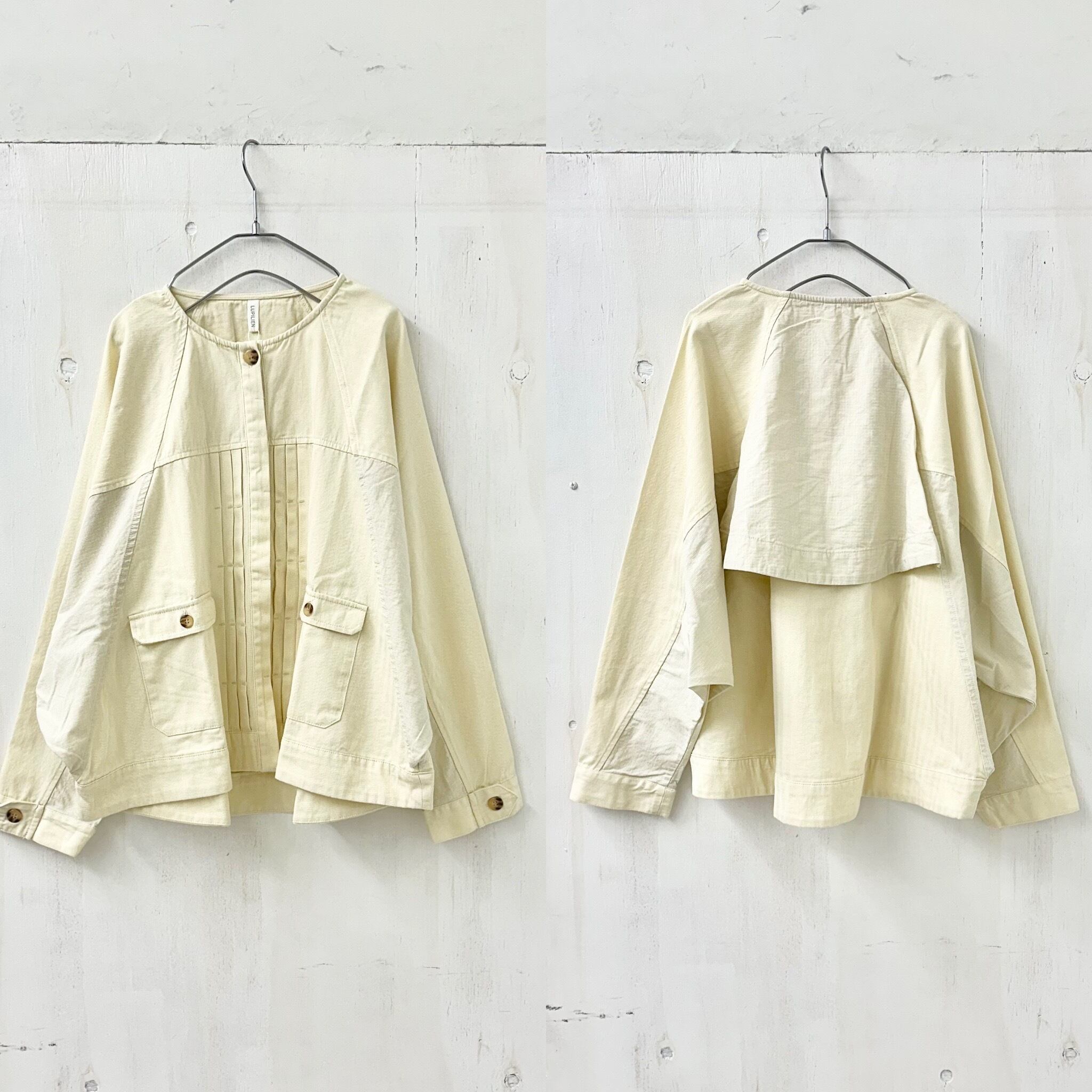 ワイドなシルエットのジャケット。緩いラグランスリーブもぬけ感たっぷりで可愛い。