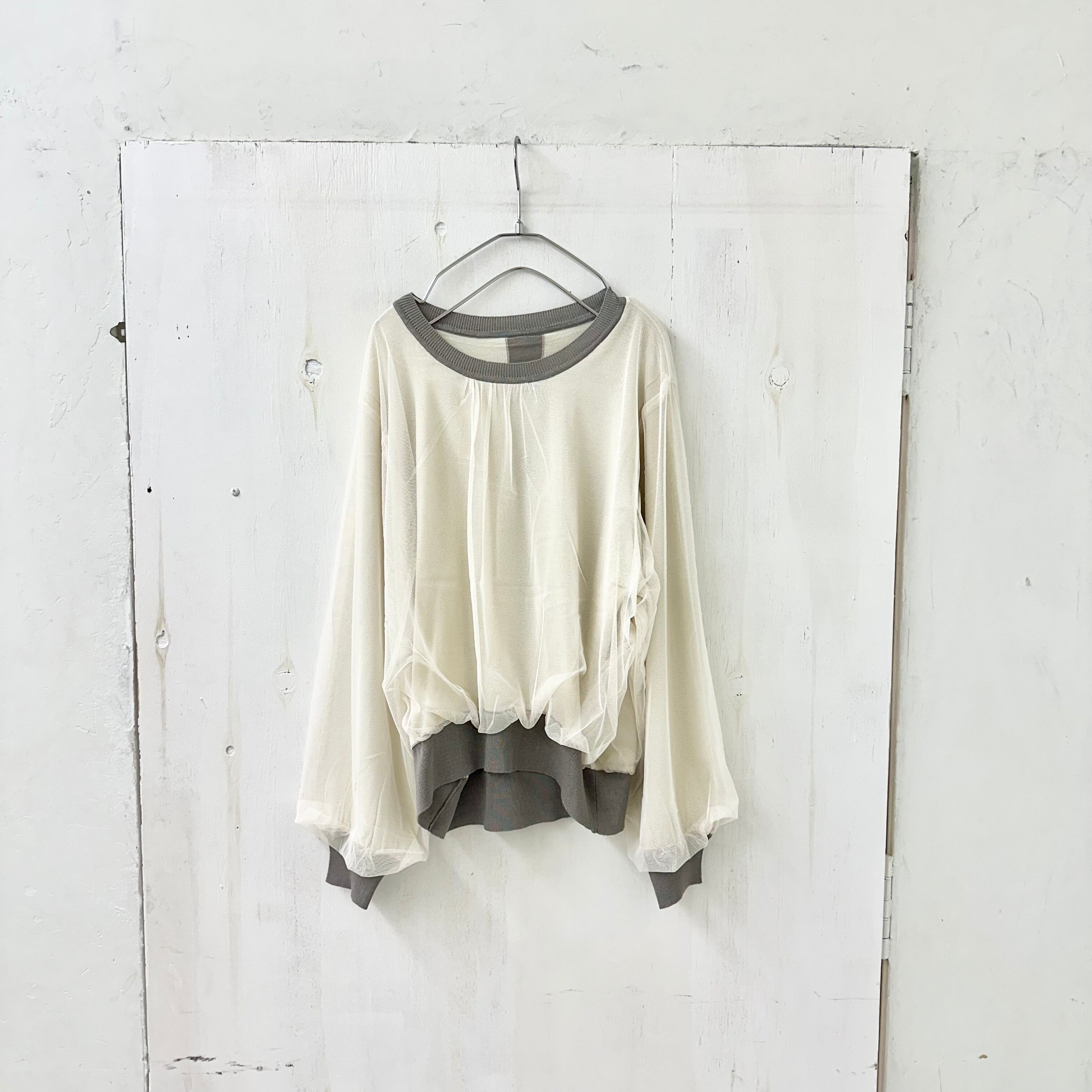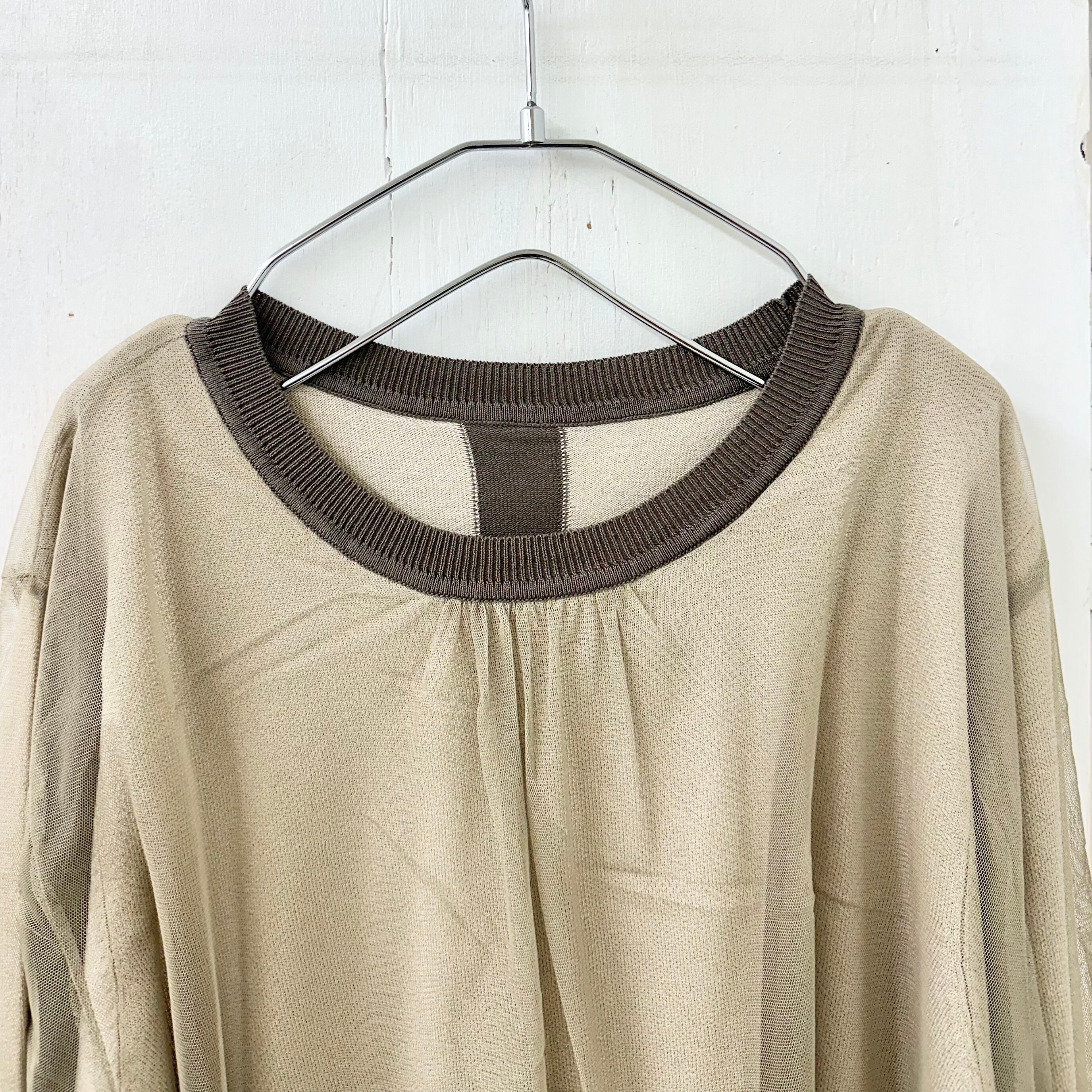 チュール ギャザー X ニット レイヤード プルオーバー 「ハンド ワッシャブル」
