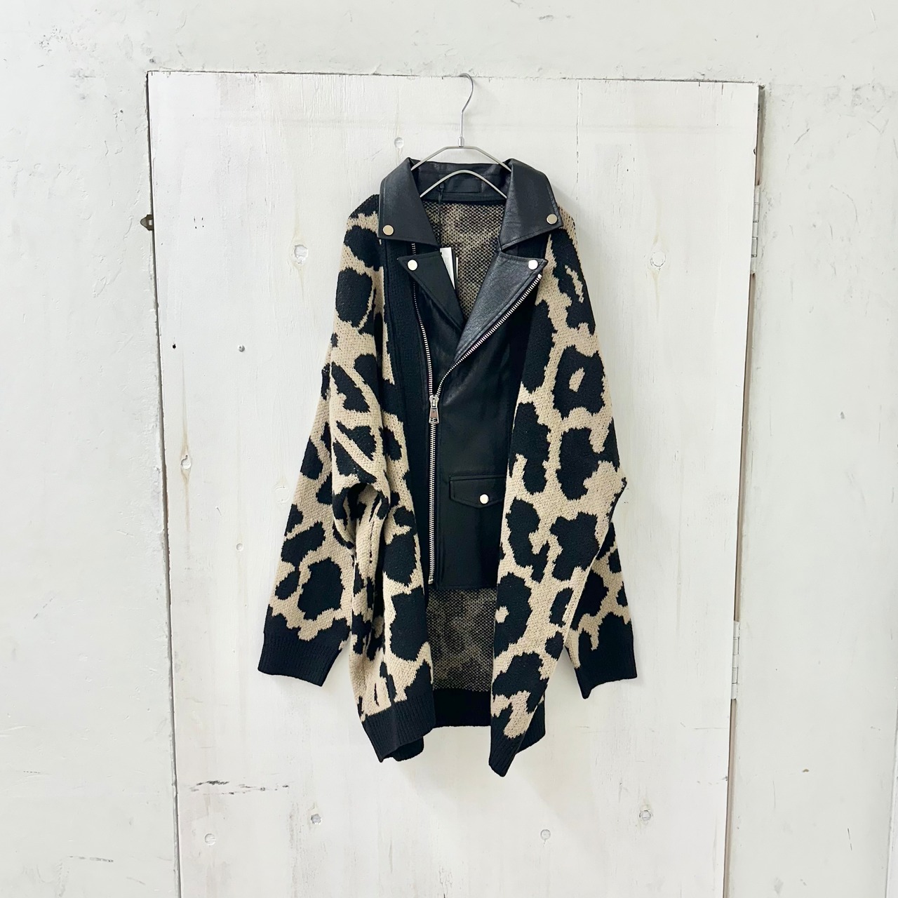 【micalle micalle】レオパード ニット X ライダース ジップ ジャケット