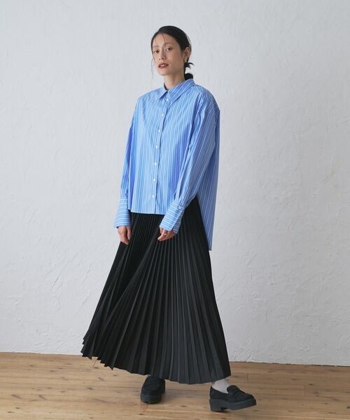 プリーツの美しく出るハリとインナー無しでも透けにくい肉感のある生地を採用しています。