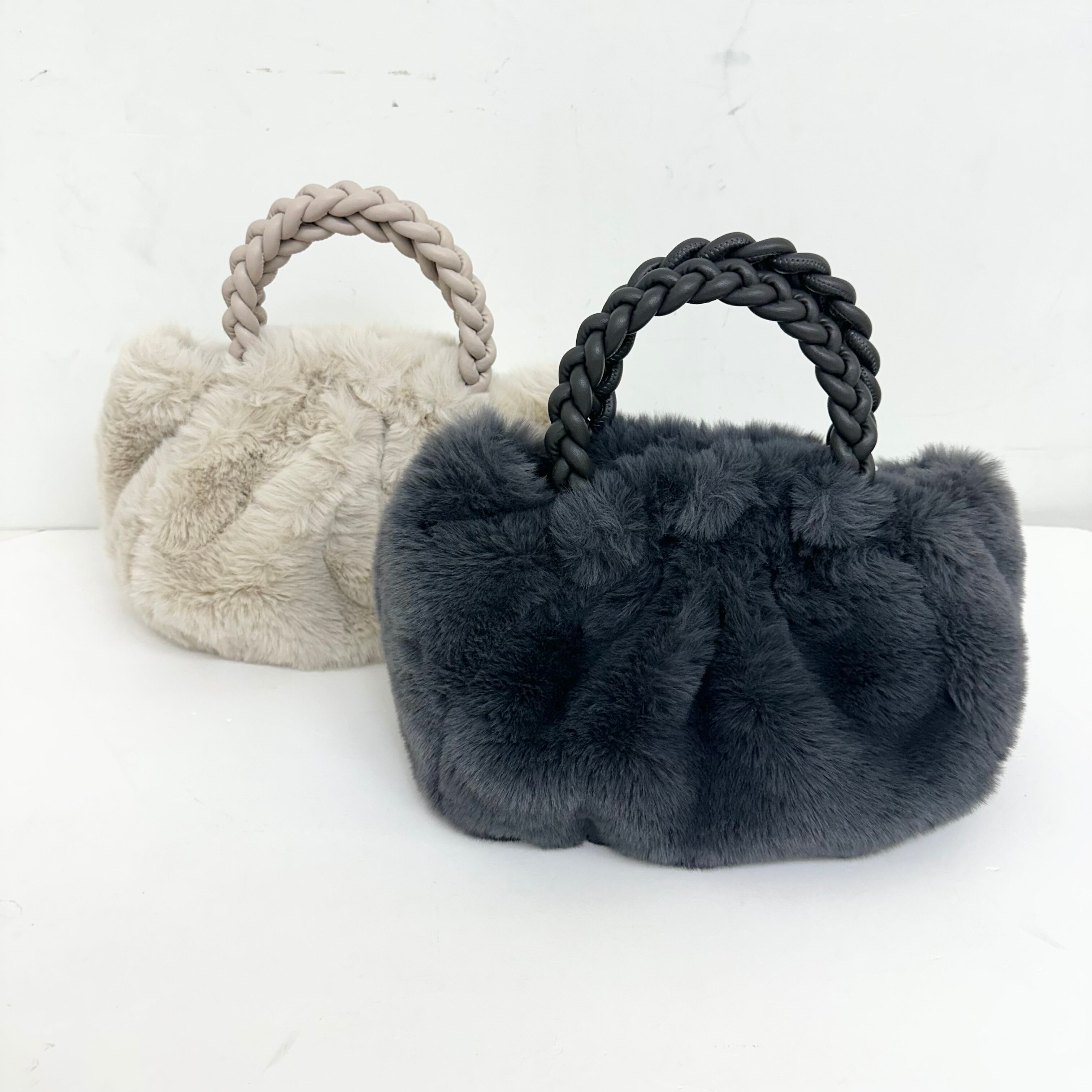 ECOレザーアミハンドル ファーバッグ