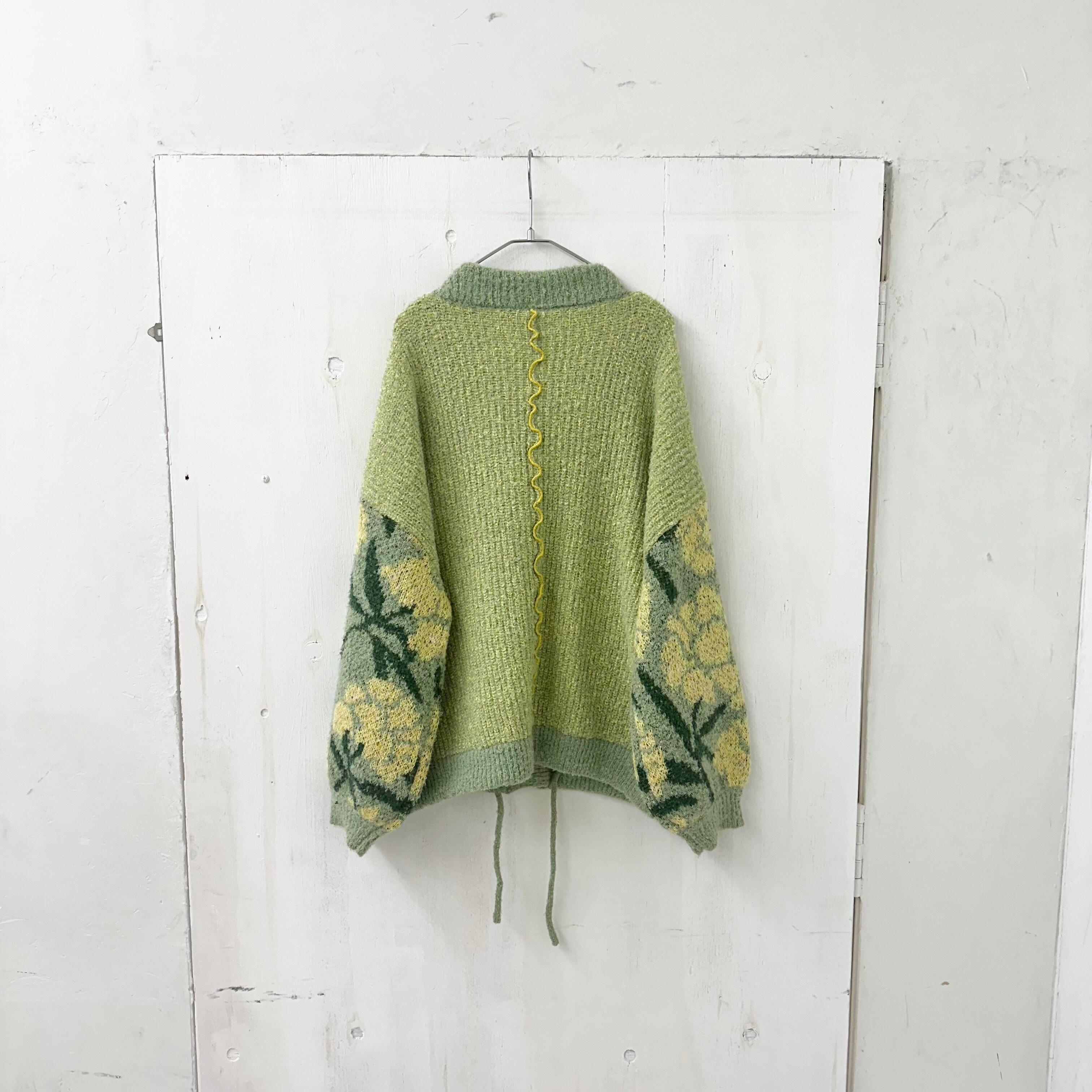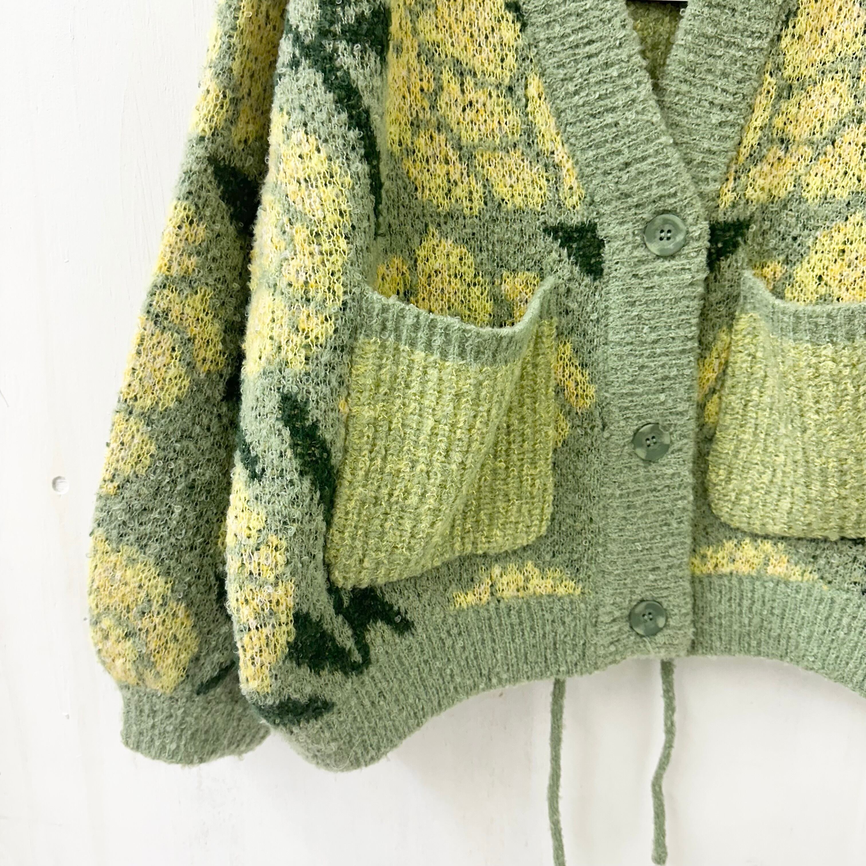 フラワー ジャガード ニット Vネック ワイド カーディガン