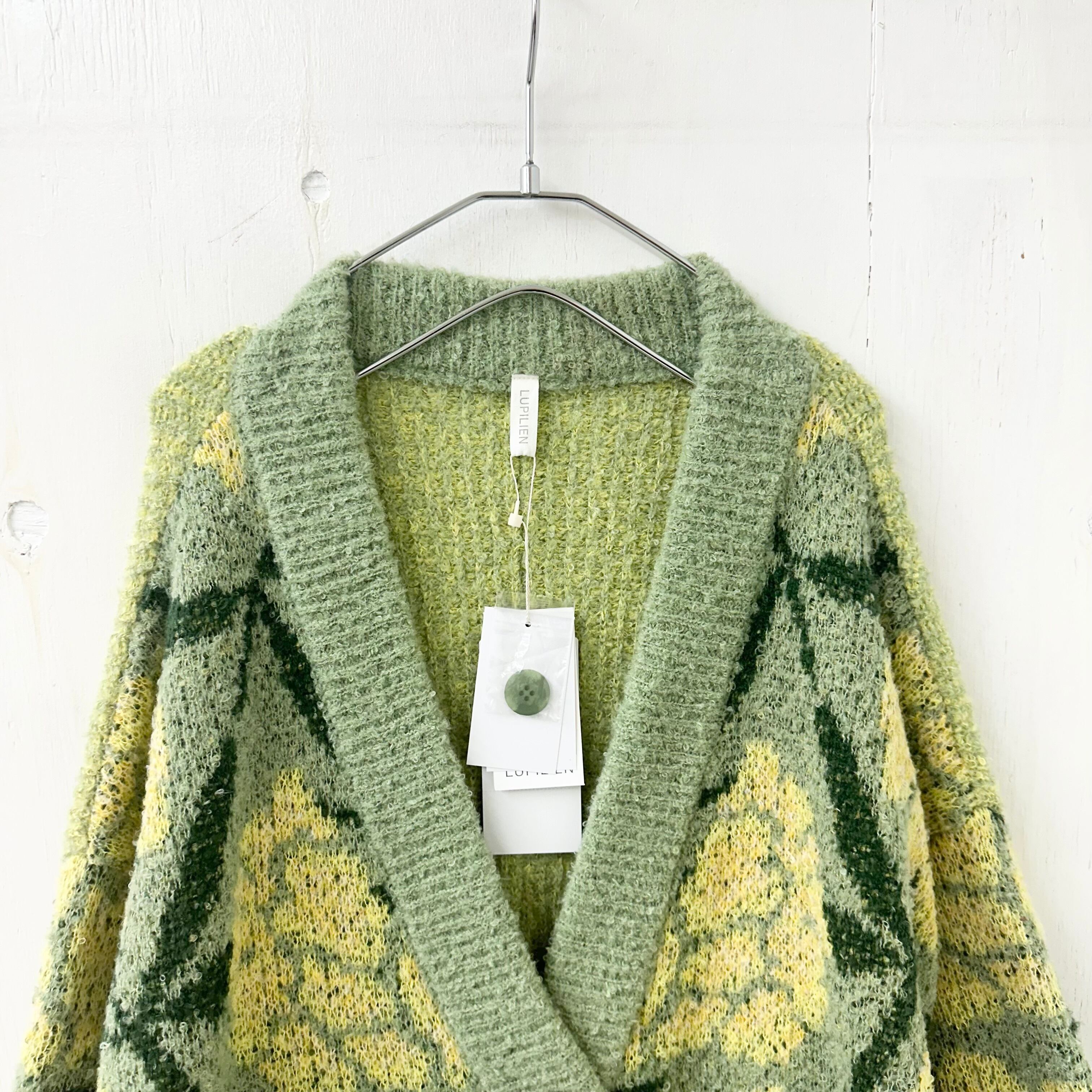 古着にありそうなジャガードの総柄が可愛いニットカーディガン。フラワーの優しいカラーがいい雰囲気。タートルやカットソーにさらっと合わせるだけで◎サロペットなんかにも♡