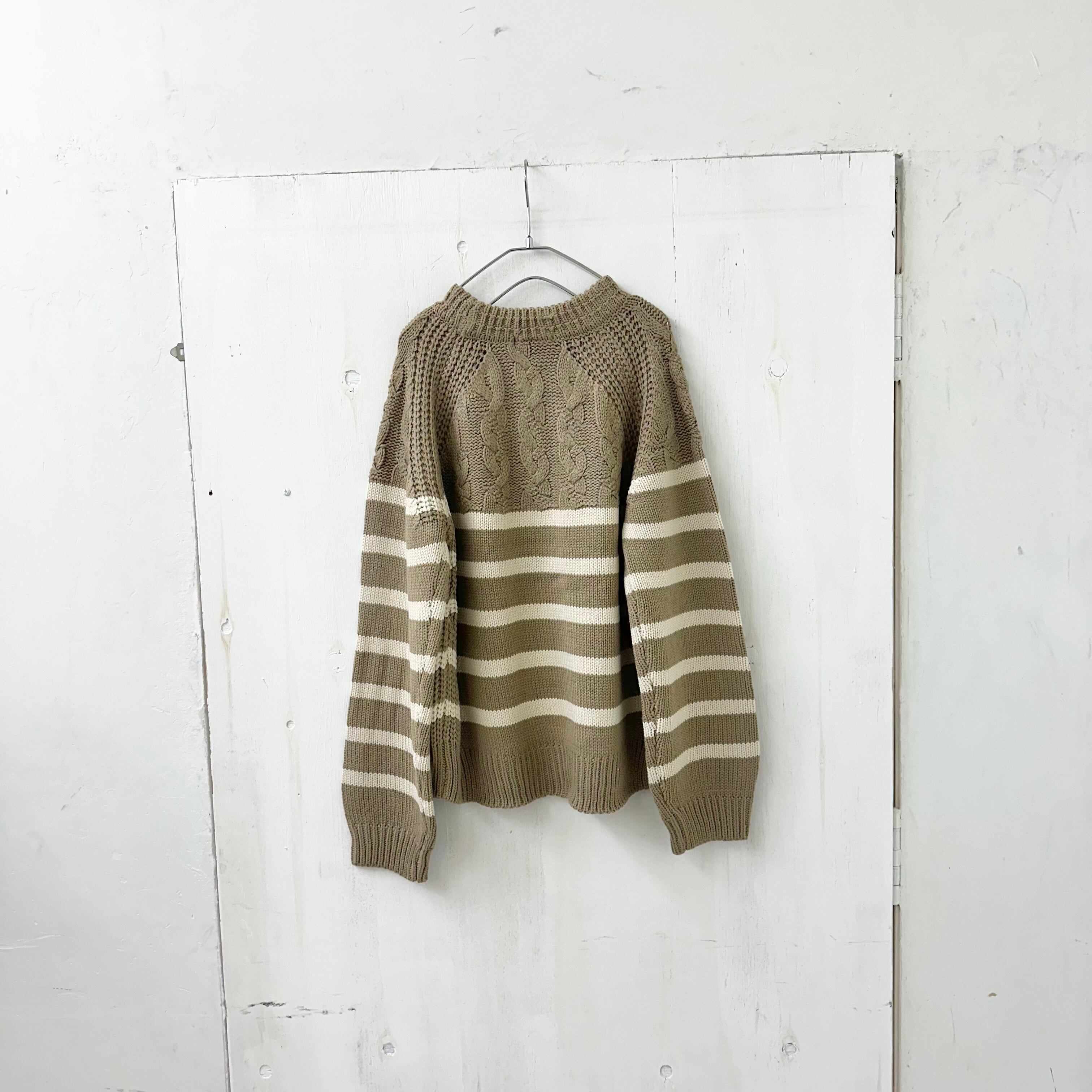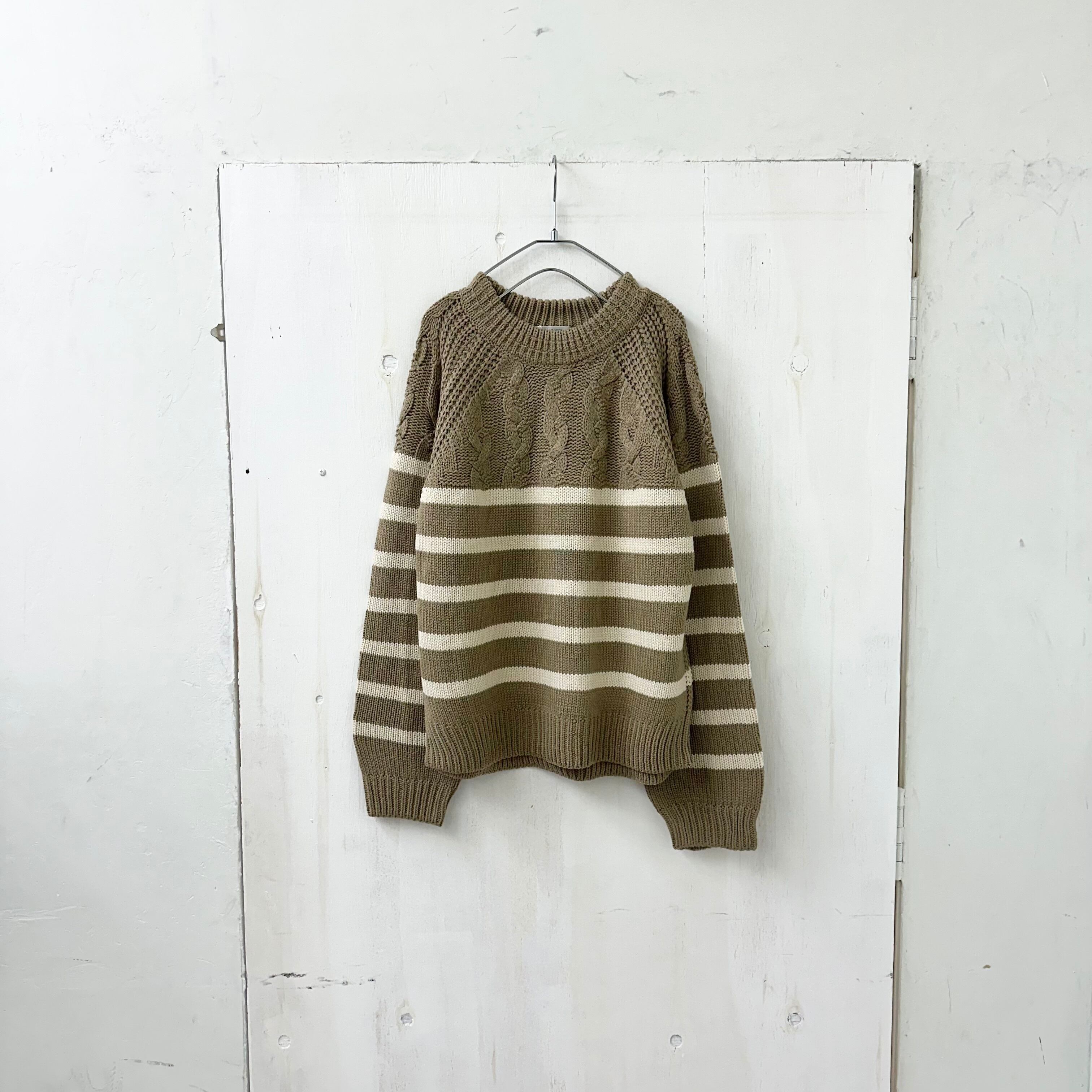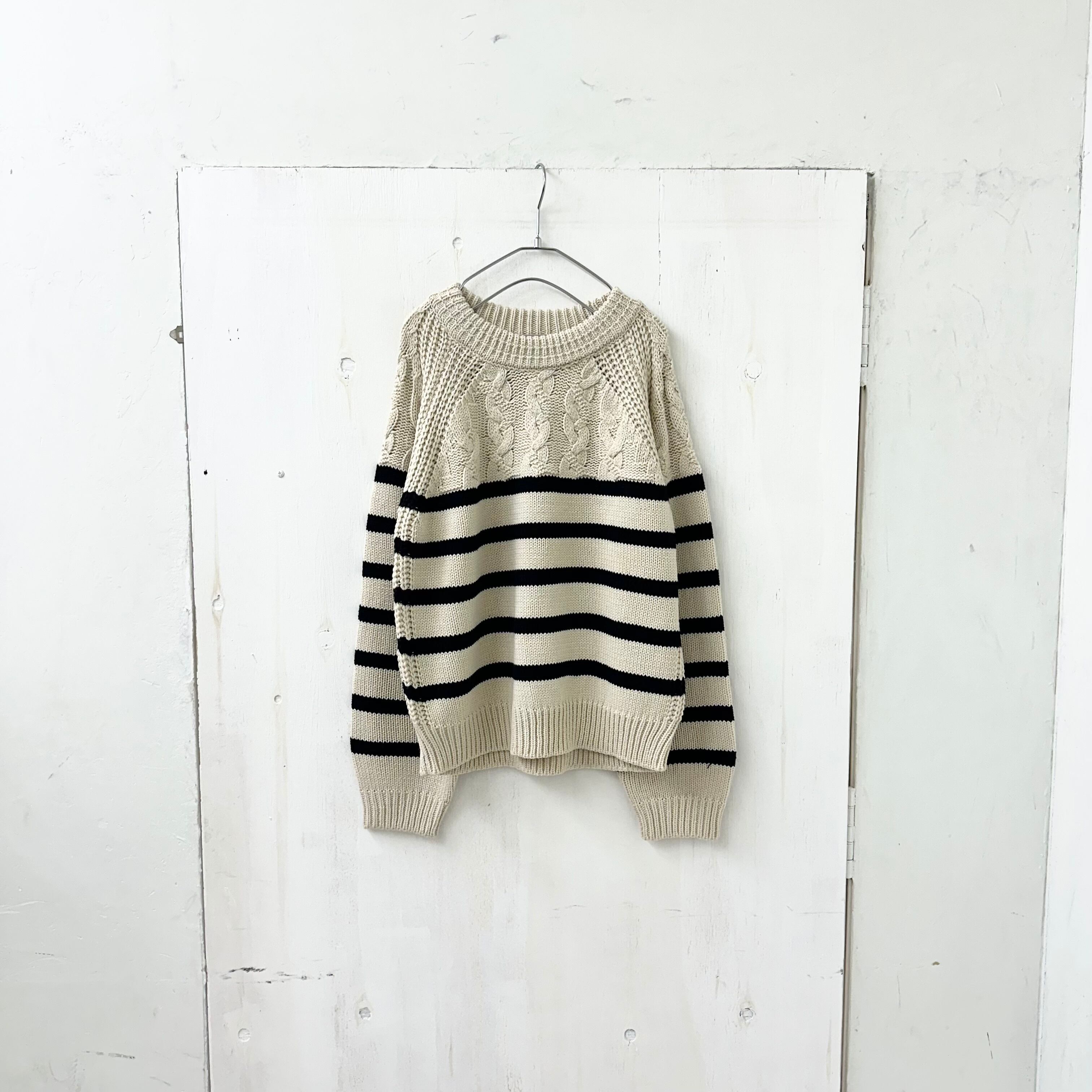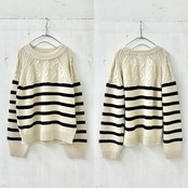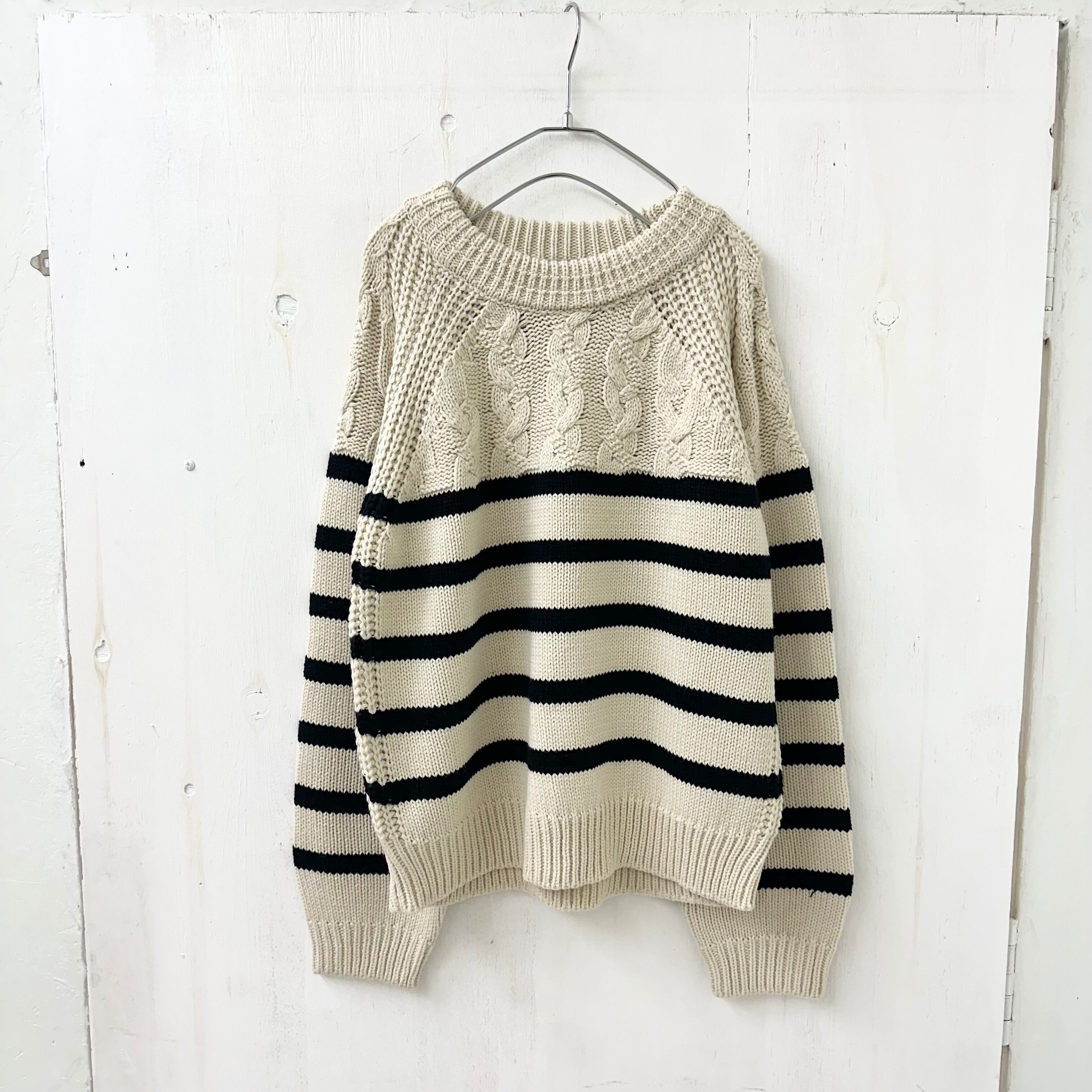 アクリル バルキー ケーブル X ボーダー ニット プルオーバー / 065-19462