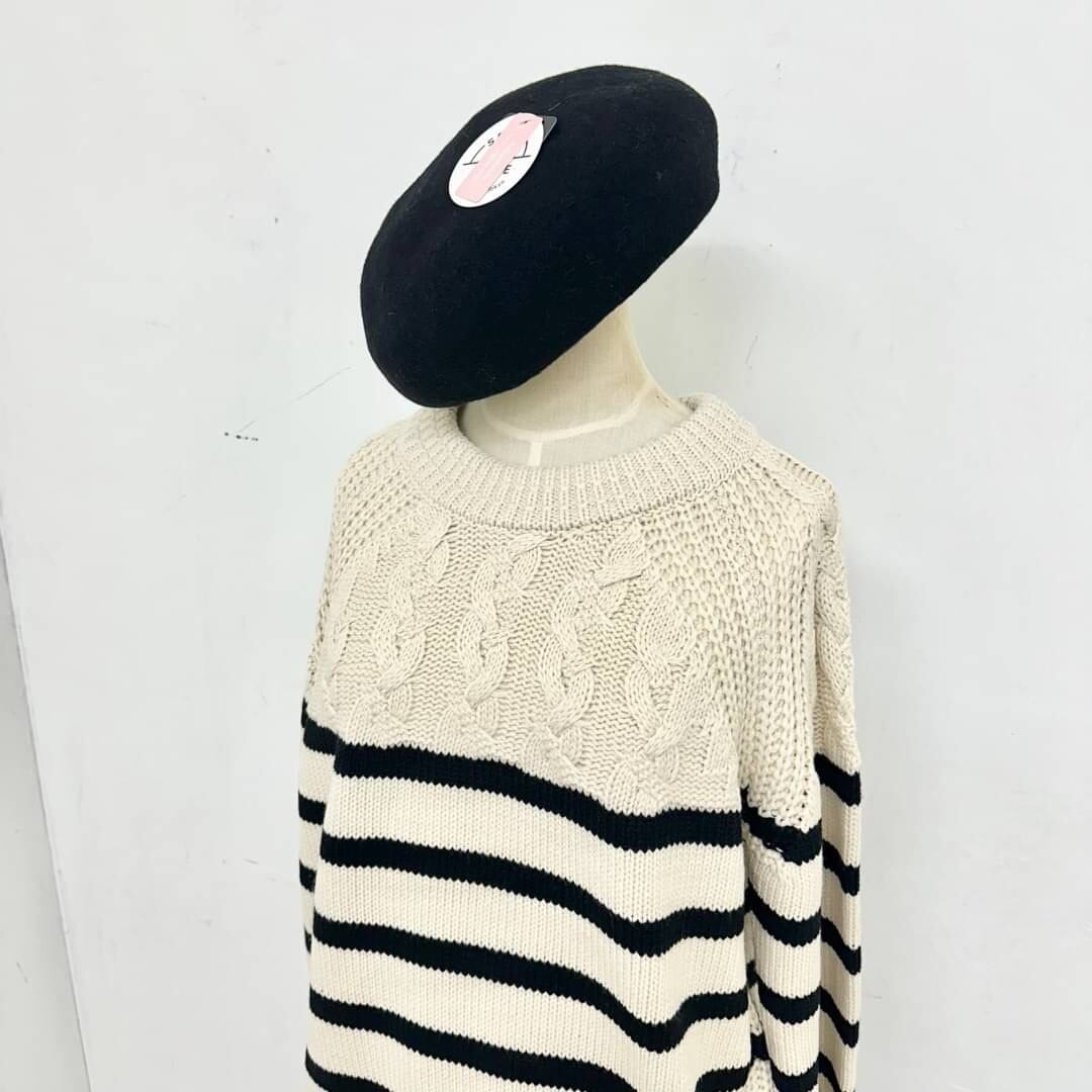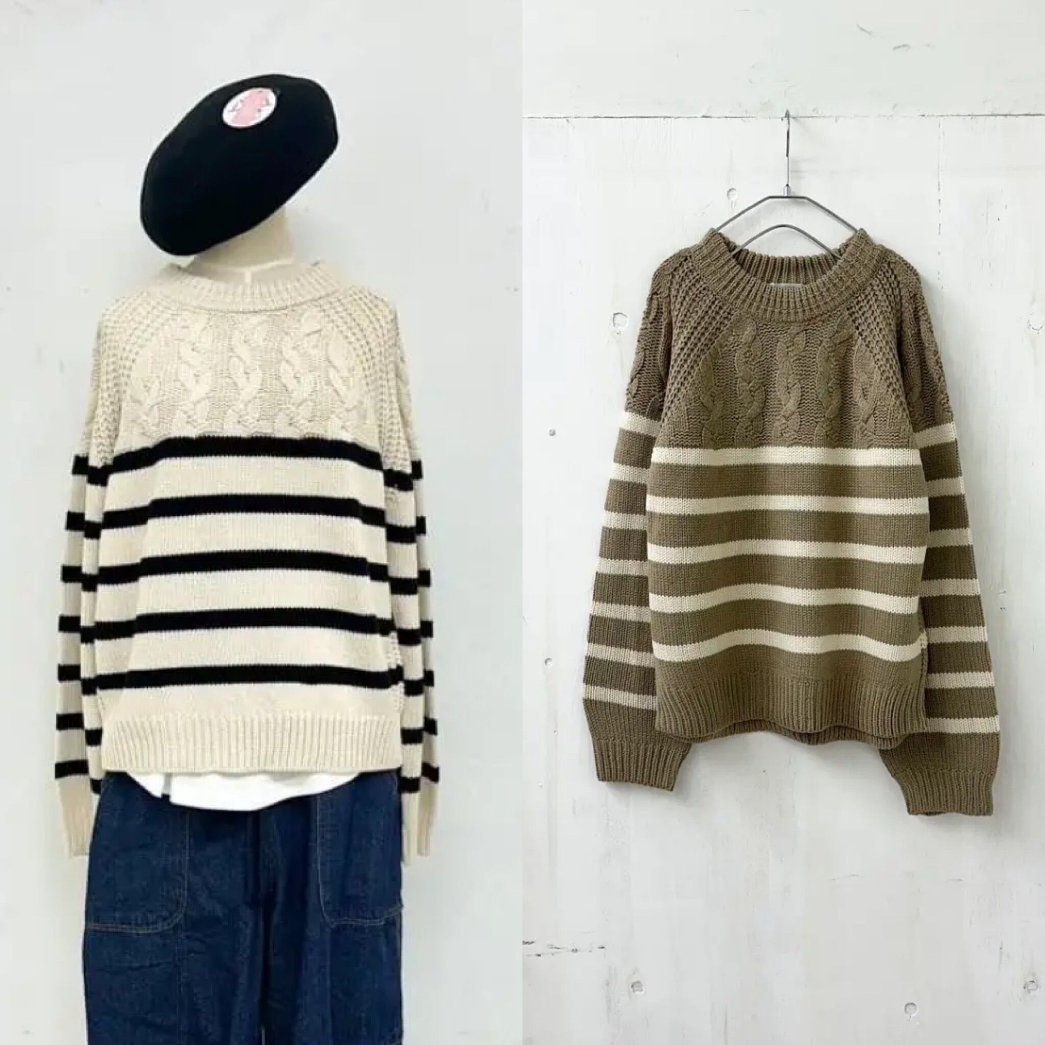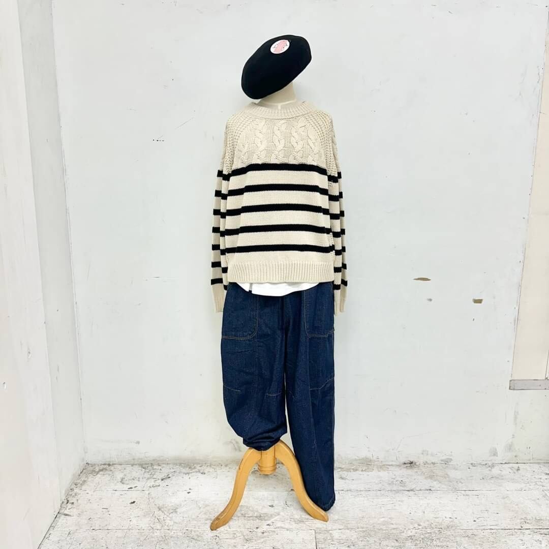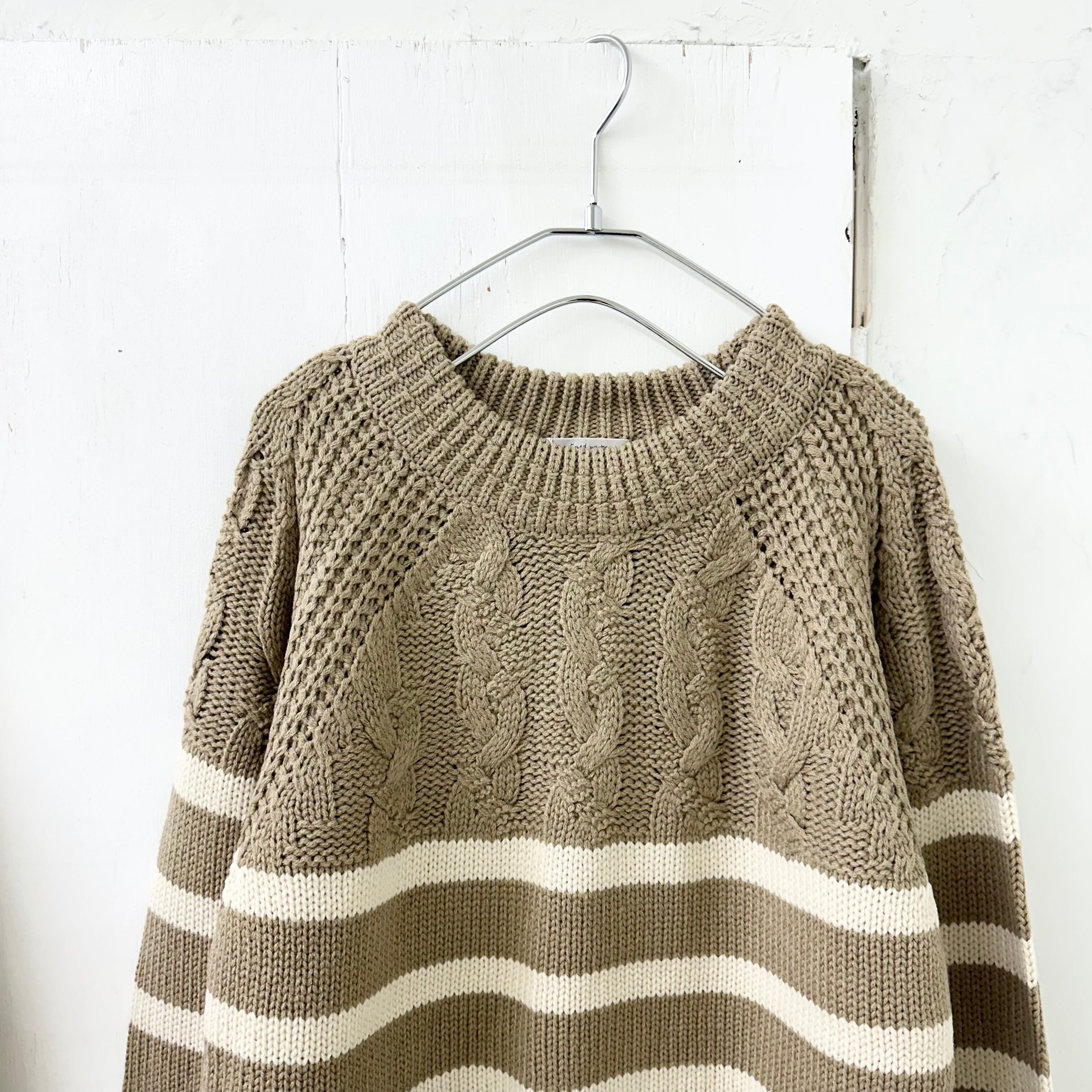 アクリル バルキー ケーブル X ボーダー ニット プルオーバー / 065-19462