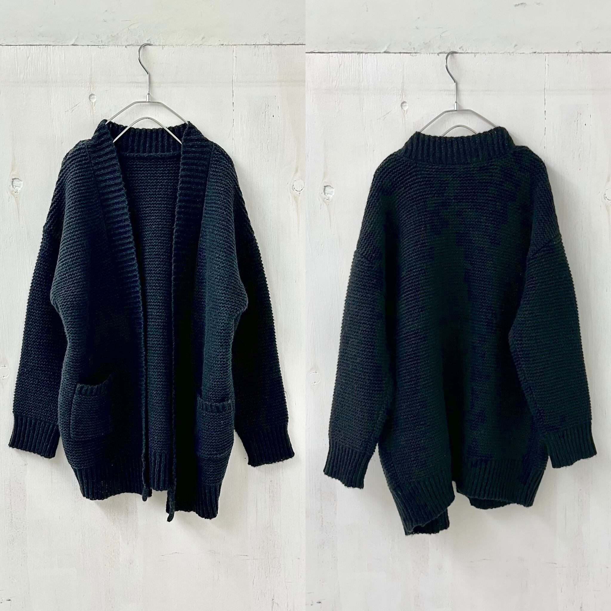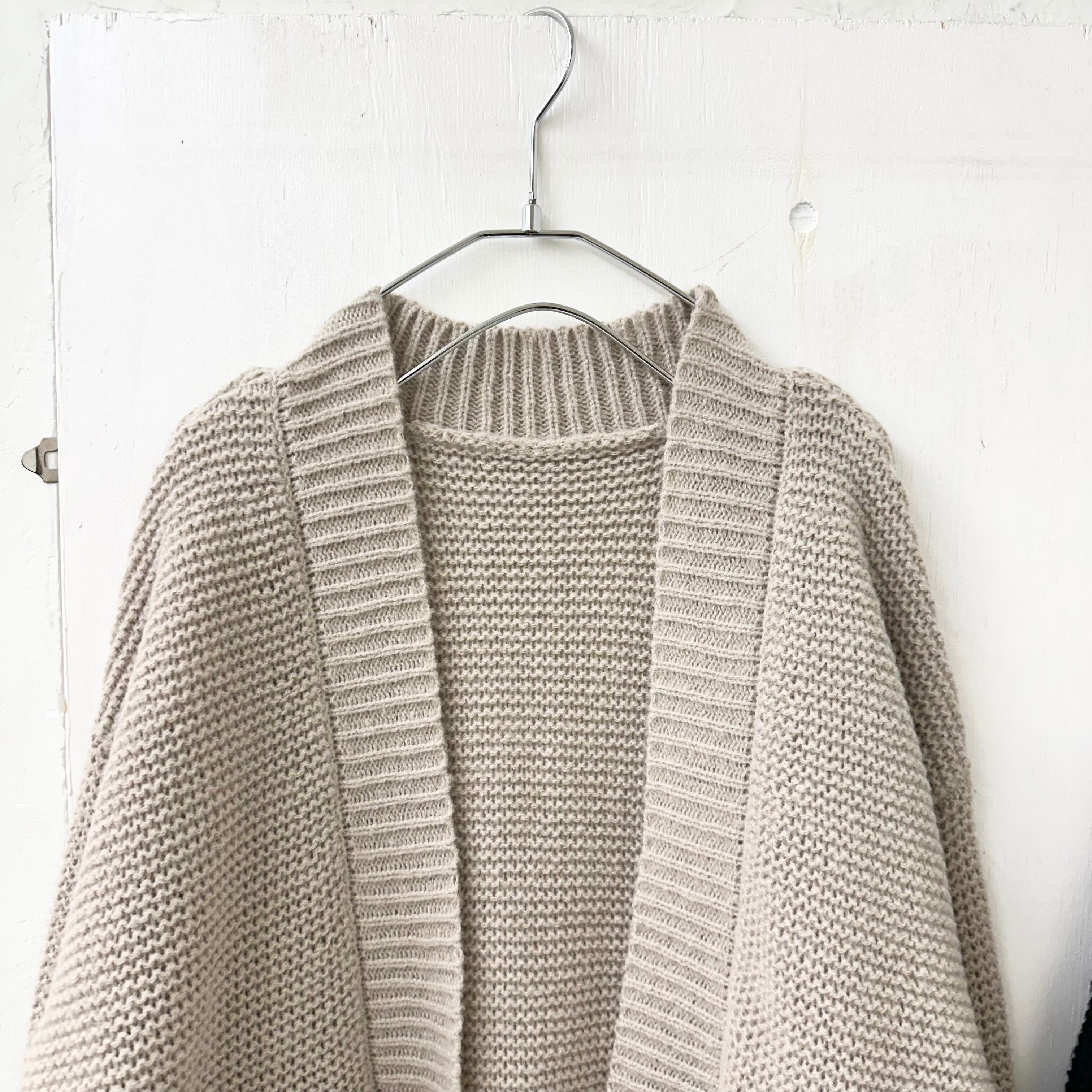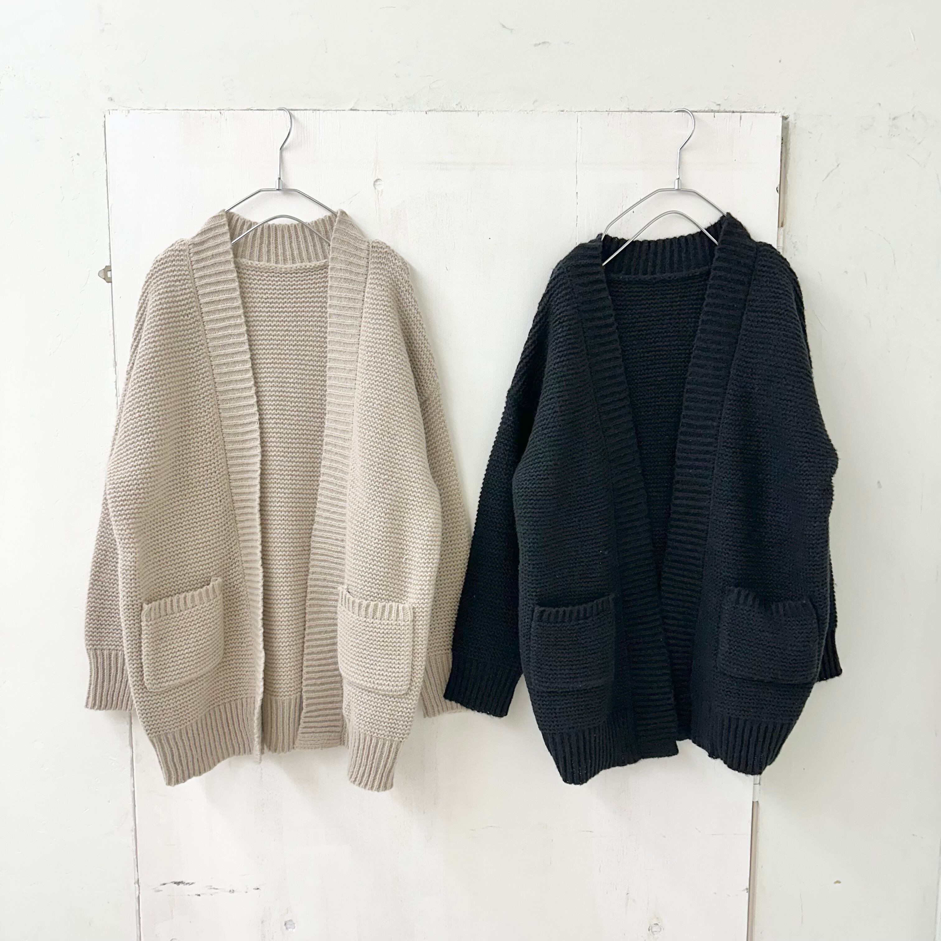 ガーター編みの質感がベーシックで良い雰囲気のカーディガン。