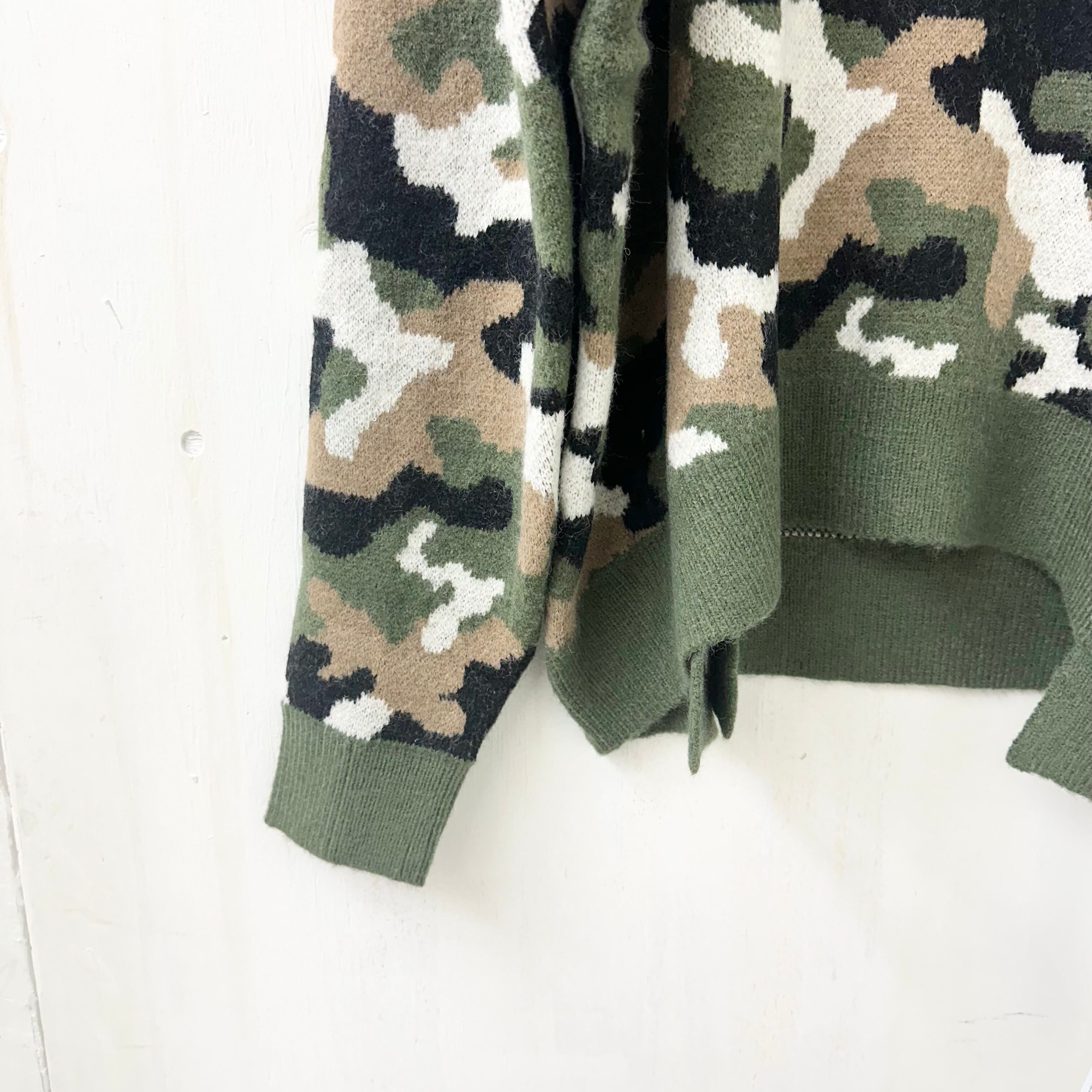 【micalle micalle】ジャガード 「カモフラージュ」 ハイネック BIG シルエット スリット ニット プルオーバー