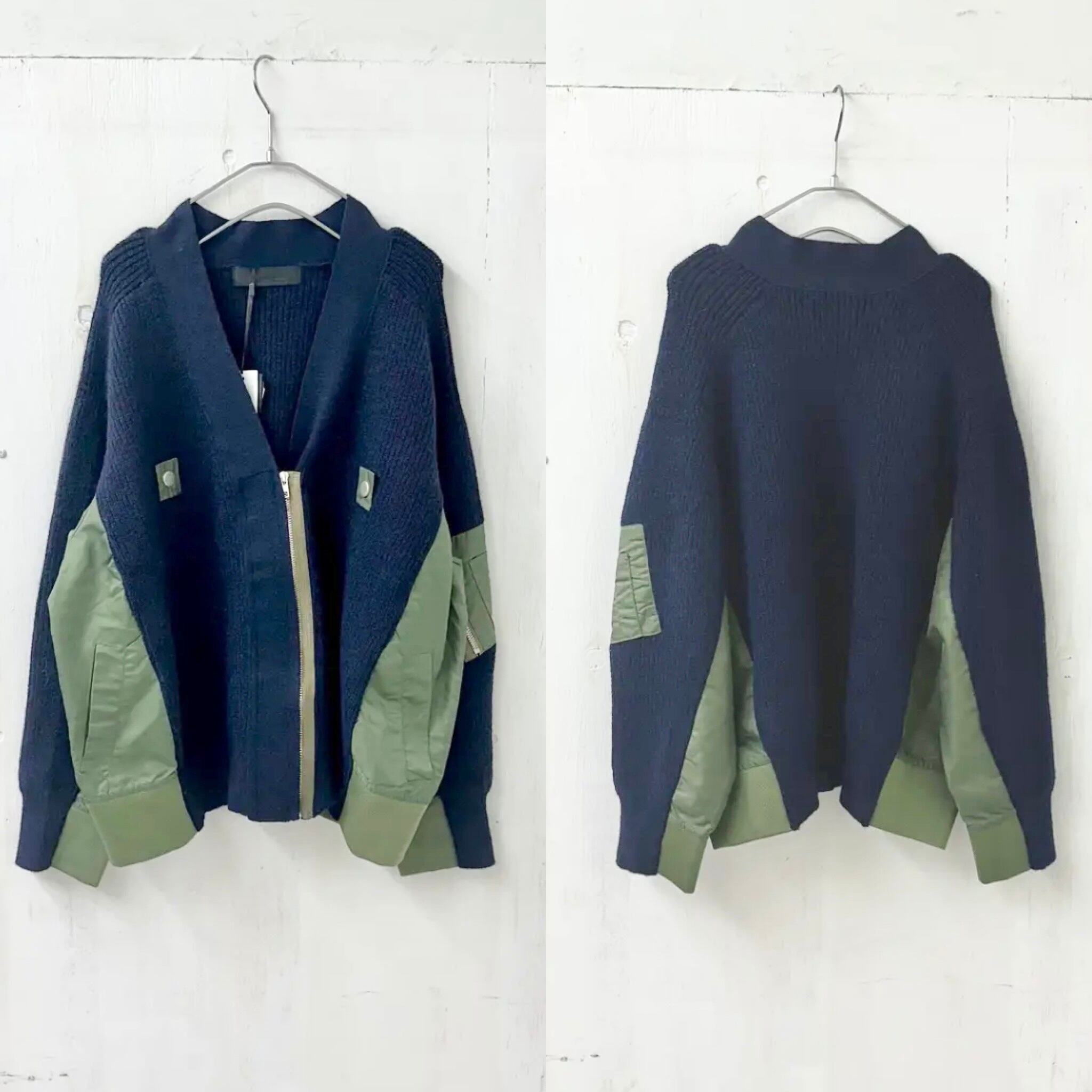 【micalle micalle】ミリタリー ドッキング ジップ UP ニット カーディガン