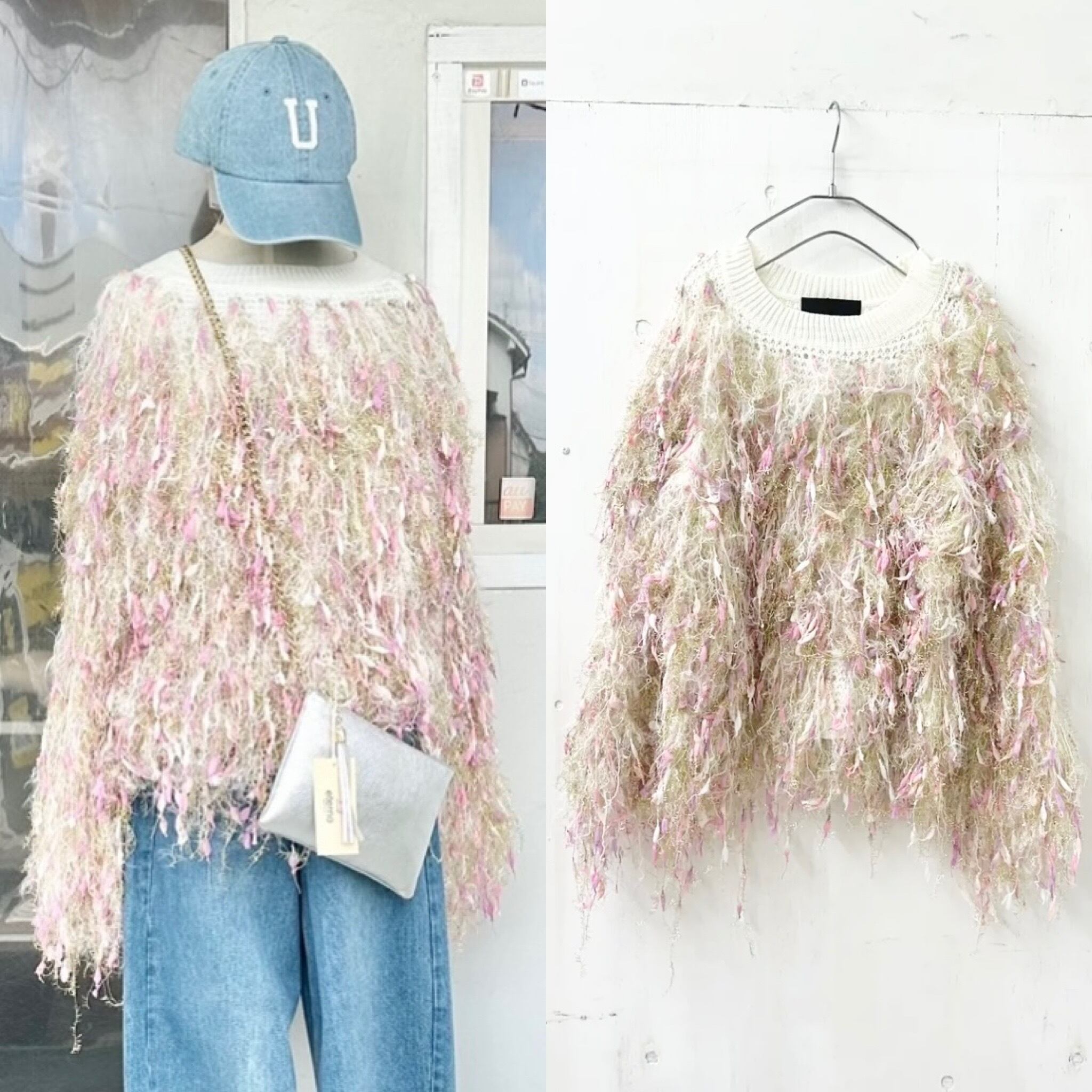 【micalle micalle】カラフル フリンジ シャギー ニット プルオーバー