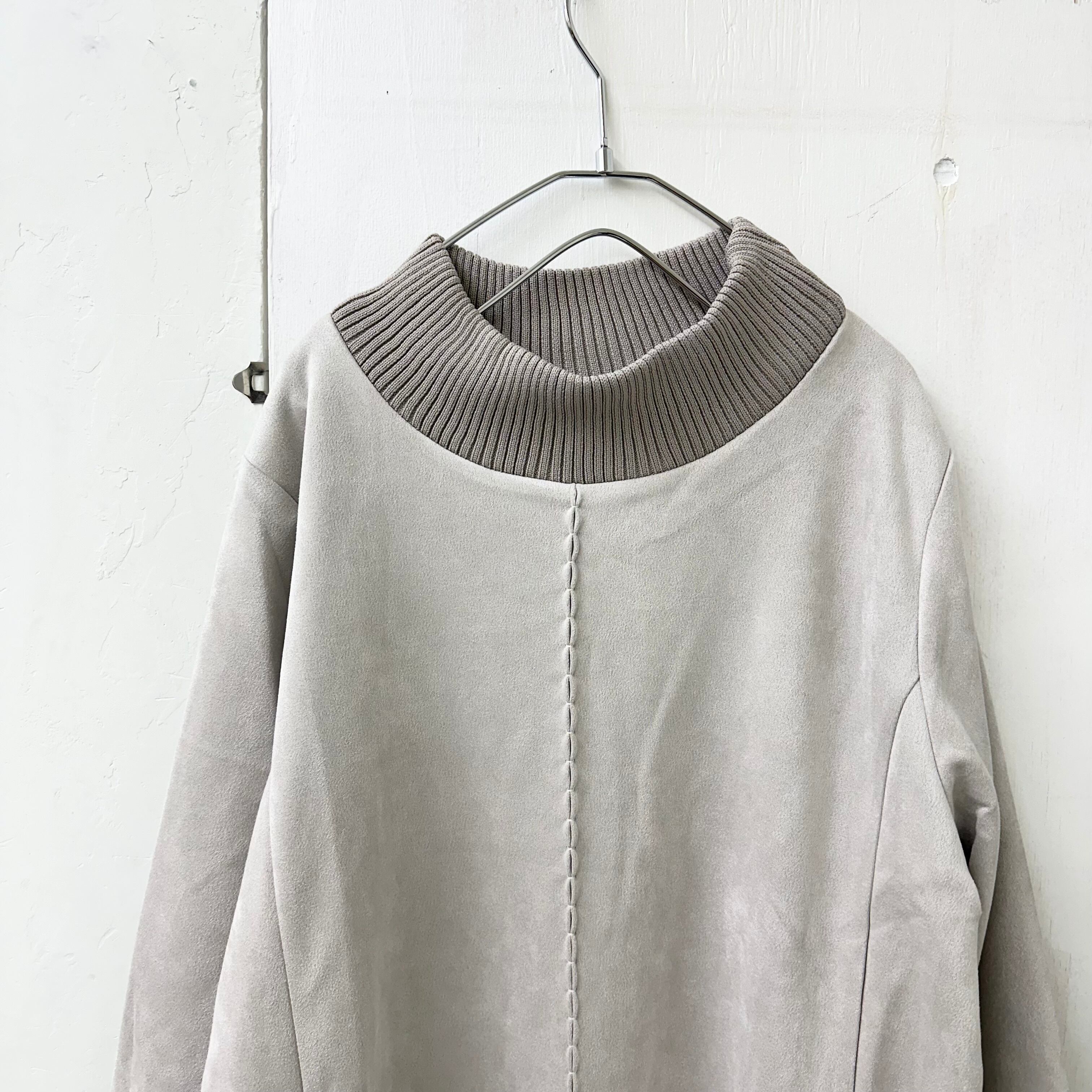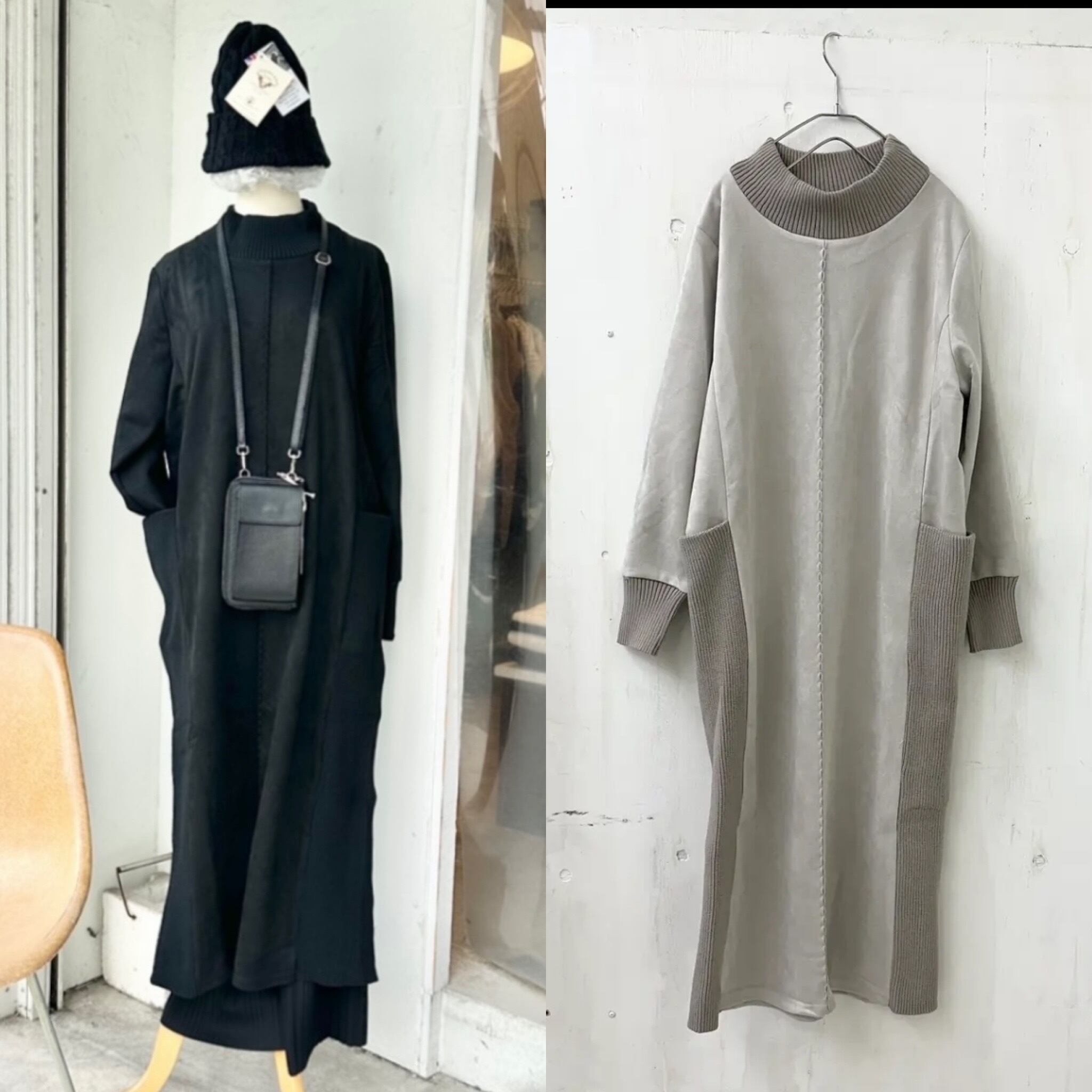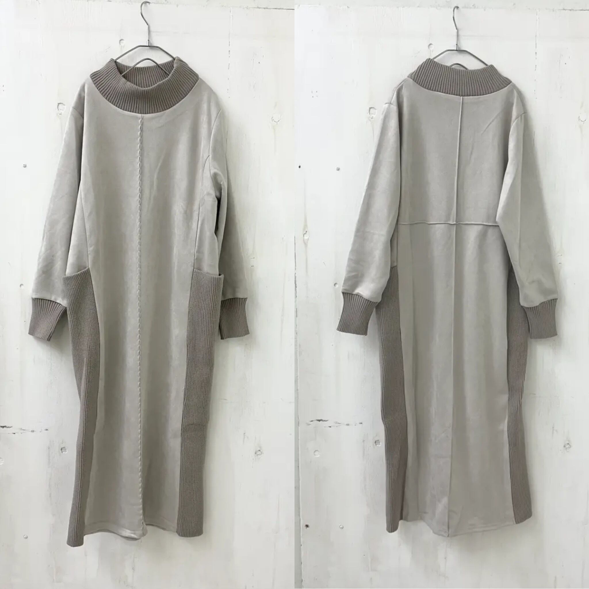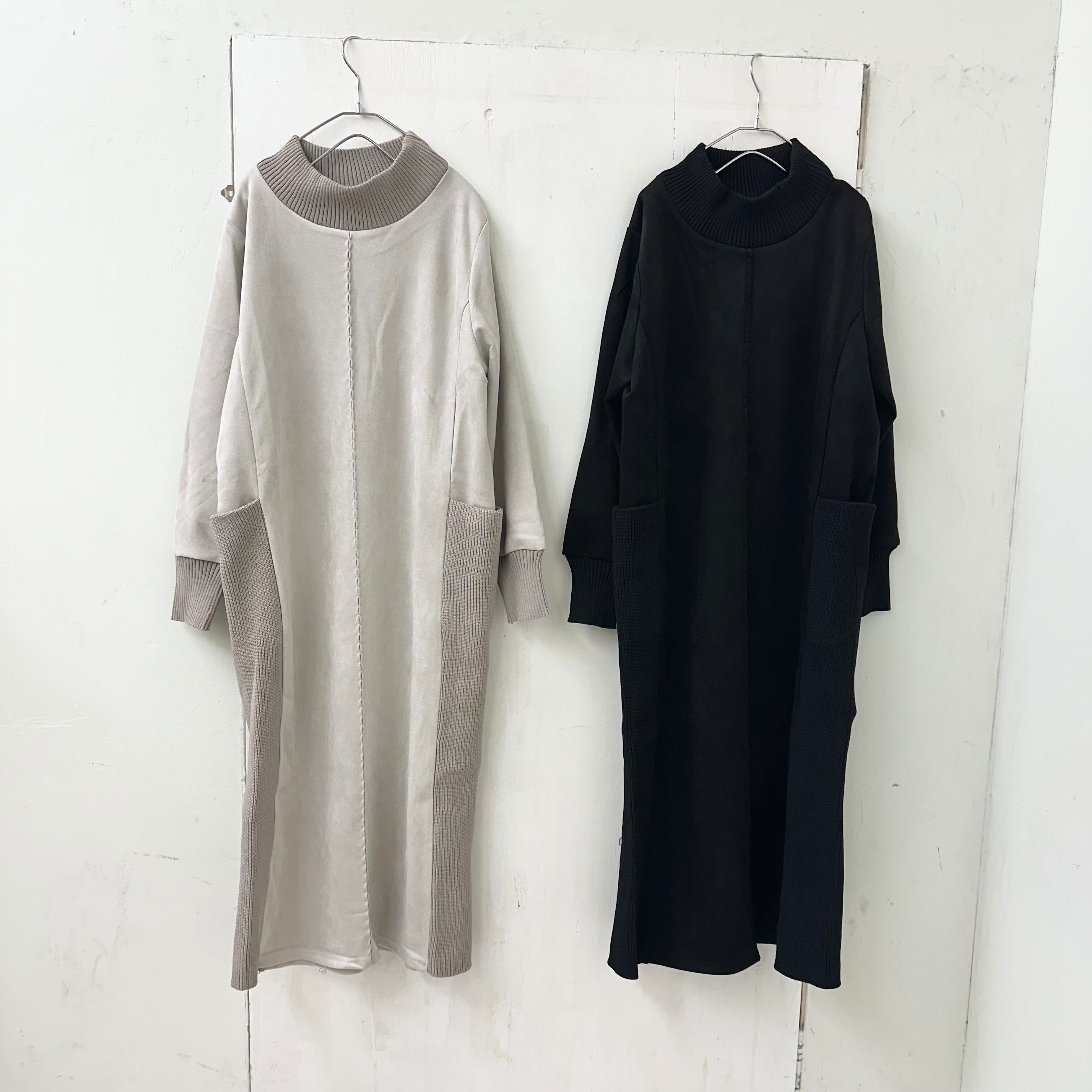 ジャージー スウェードxリブ モック ネック ロング ワンピース