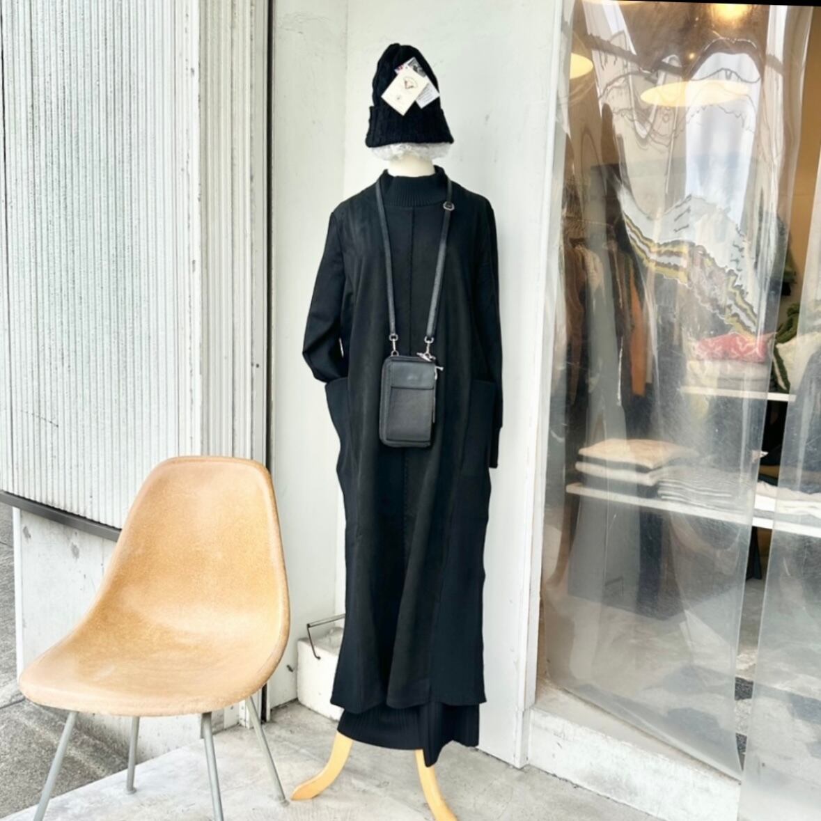 モックネックのナチュラルなワンピースは