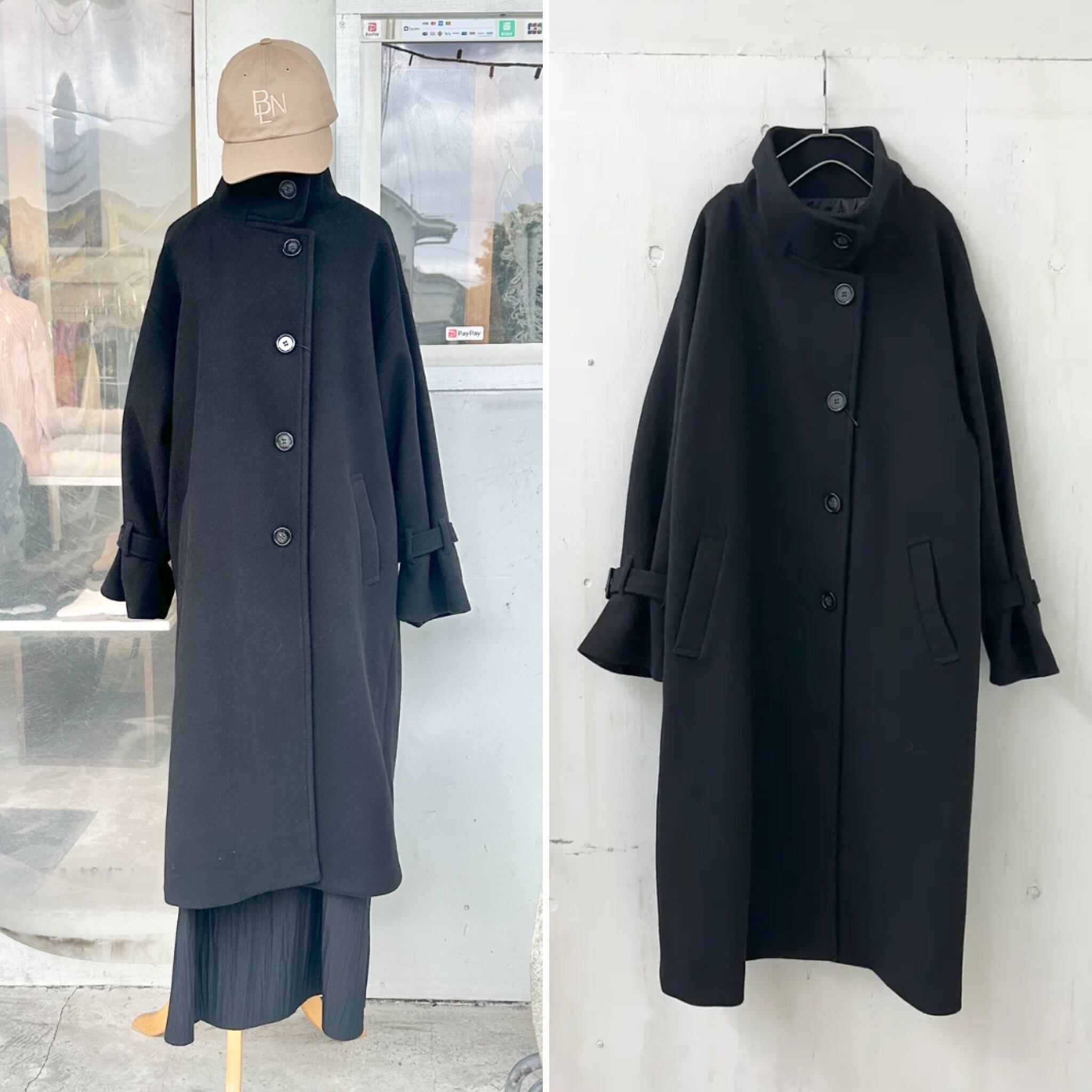 フェイク ウール スタンド ロング コート