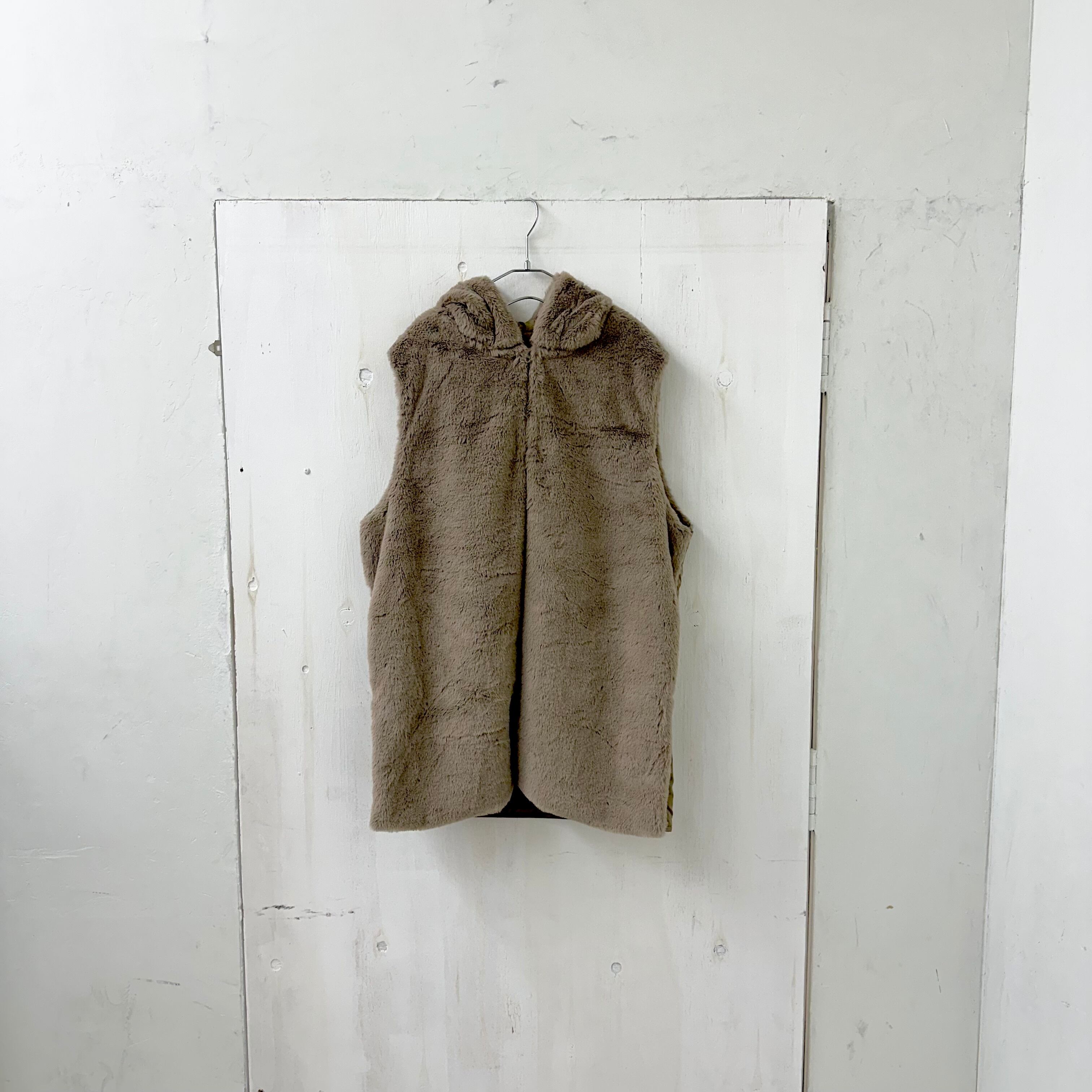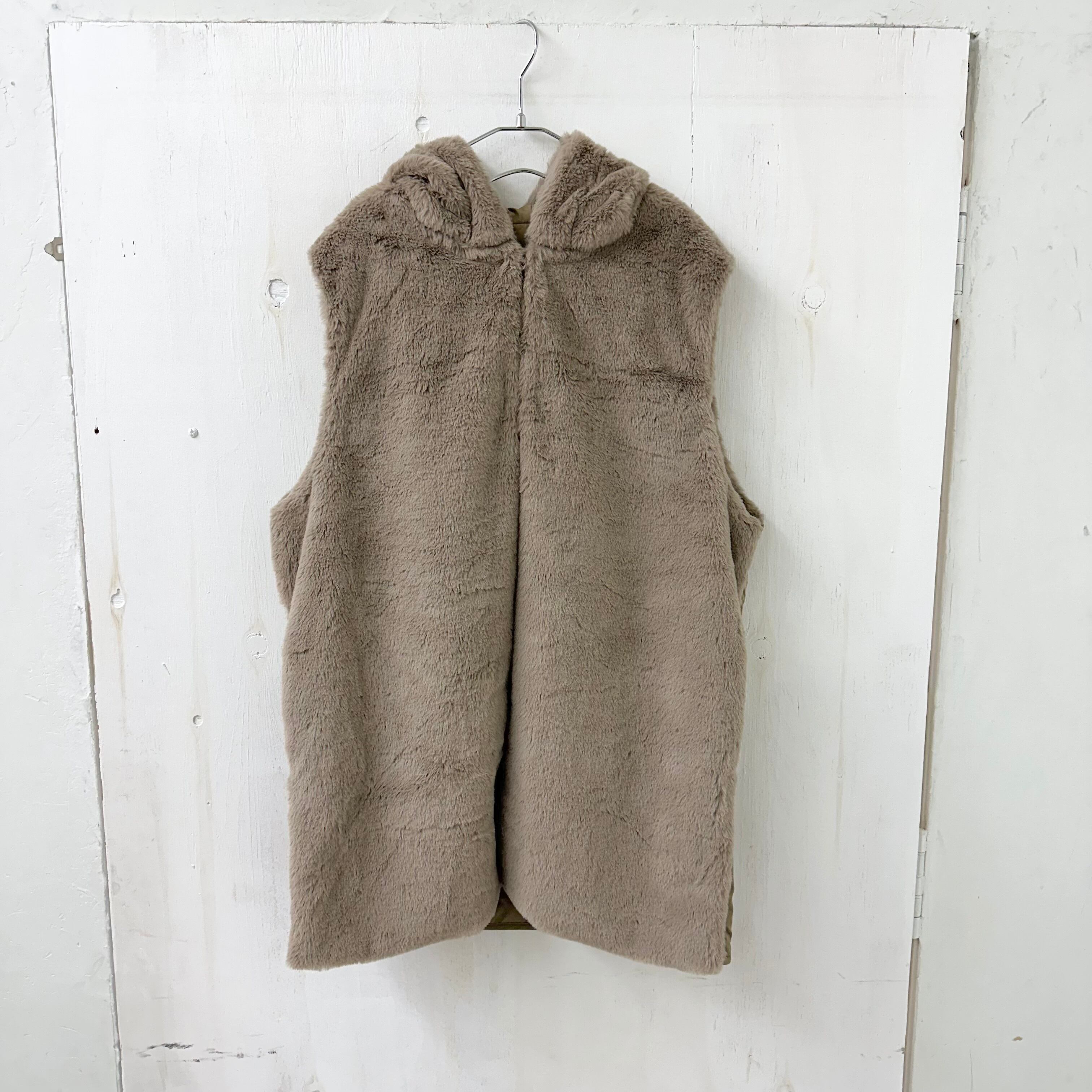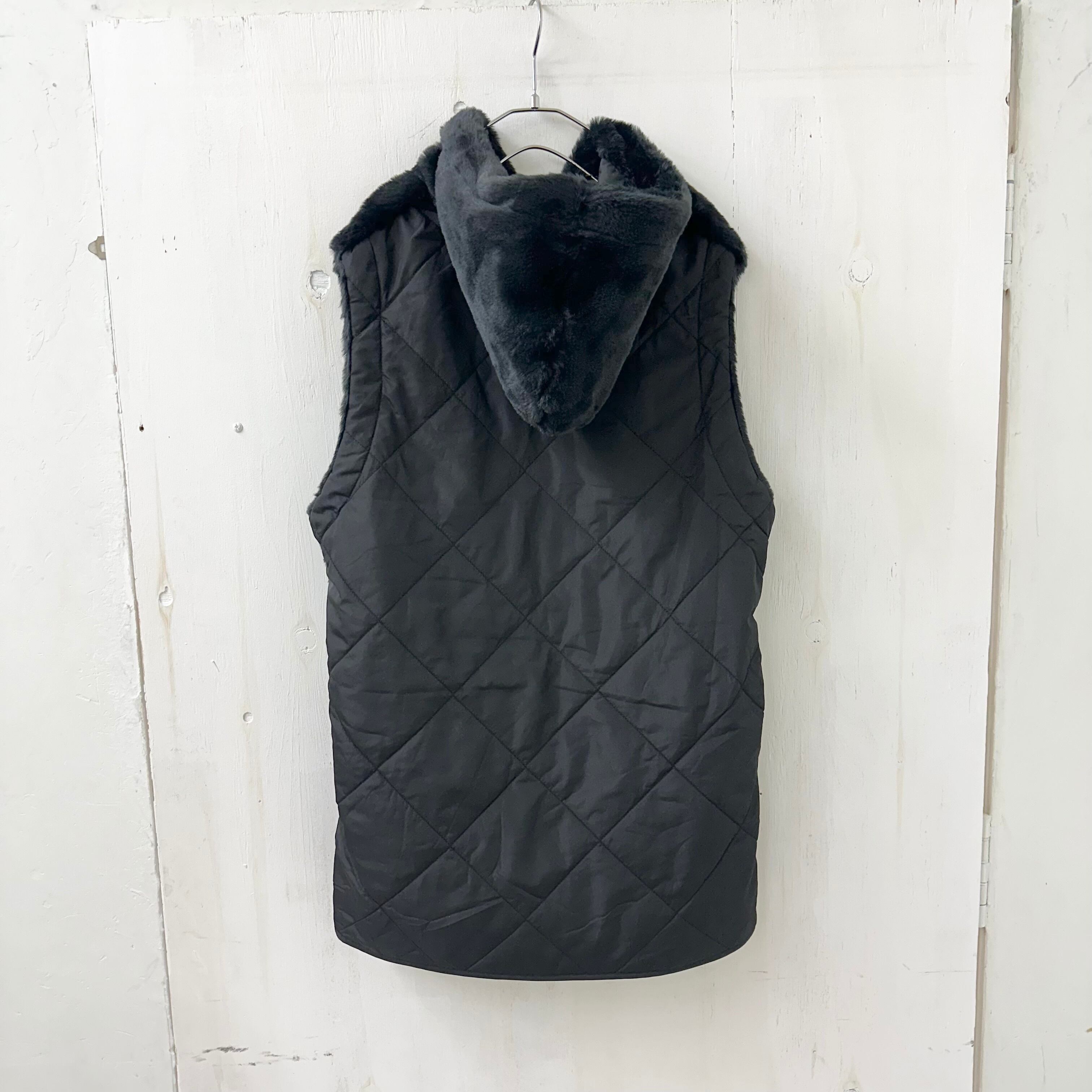 ファー x 中綿キルティング パーカー ベスト / 378-29500
