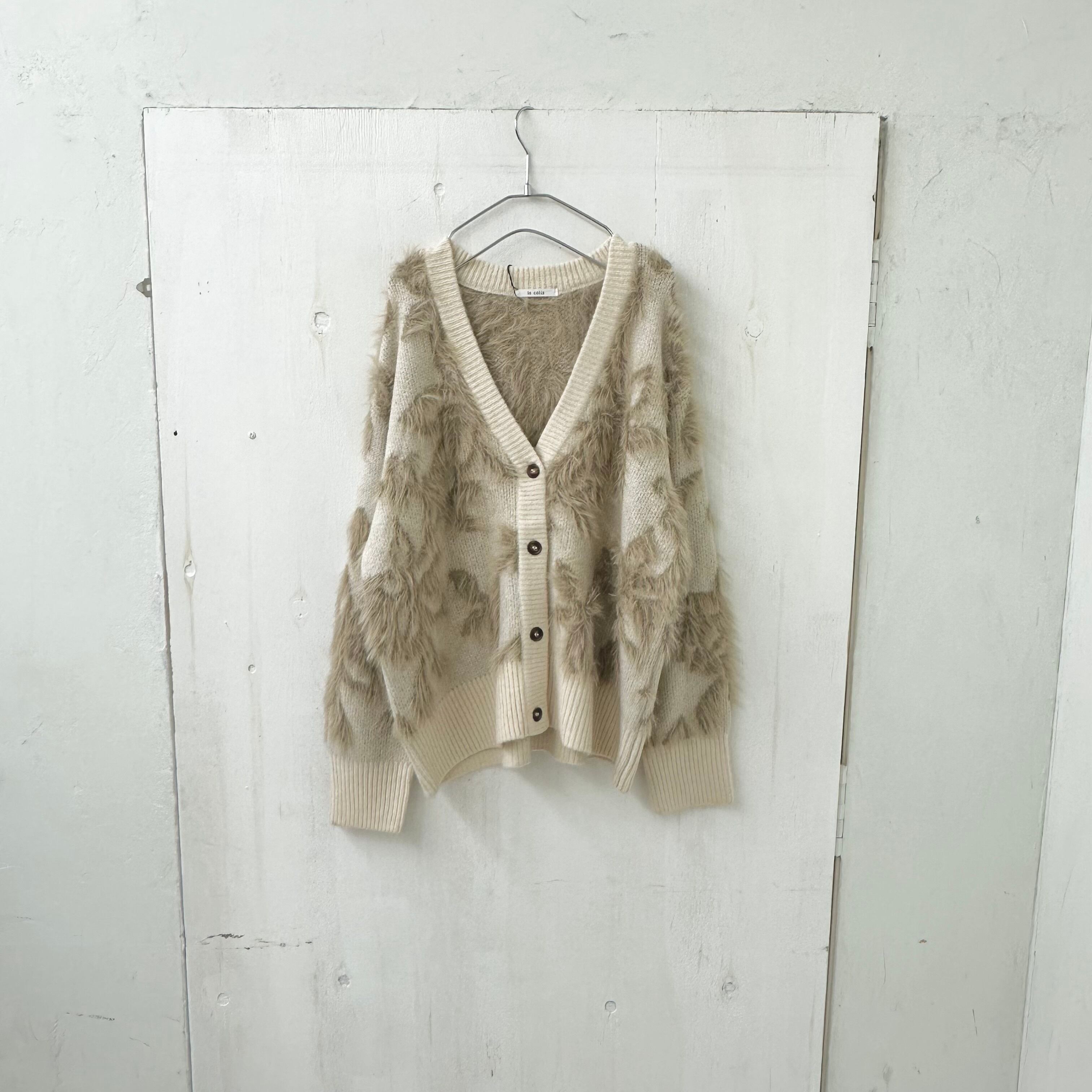 フェザーの質感が個性的で可愛いニットカーディガン。