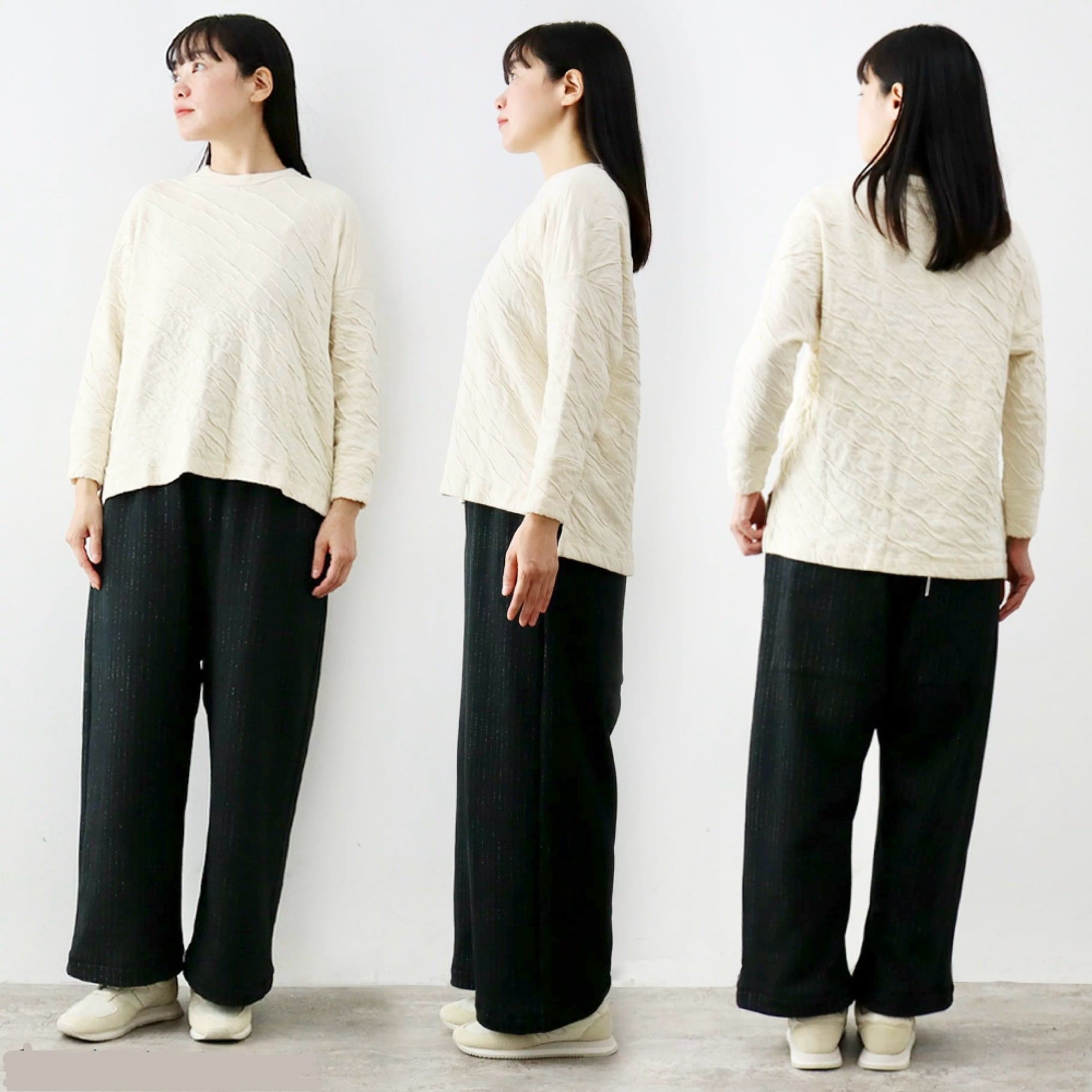 人気の緩いワイド パンツ シリーズからストライプ ジャガードが上品な