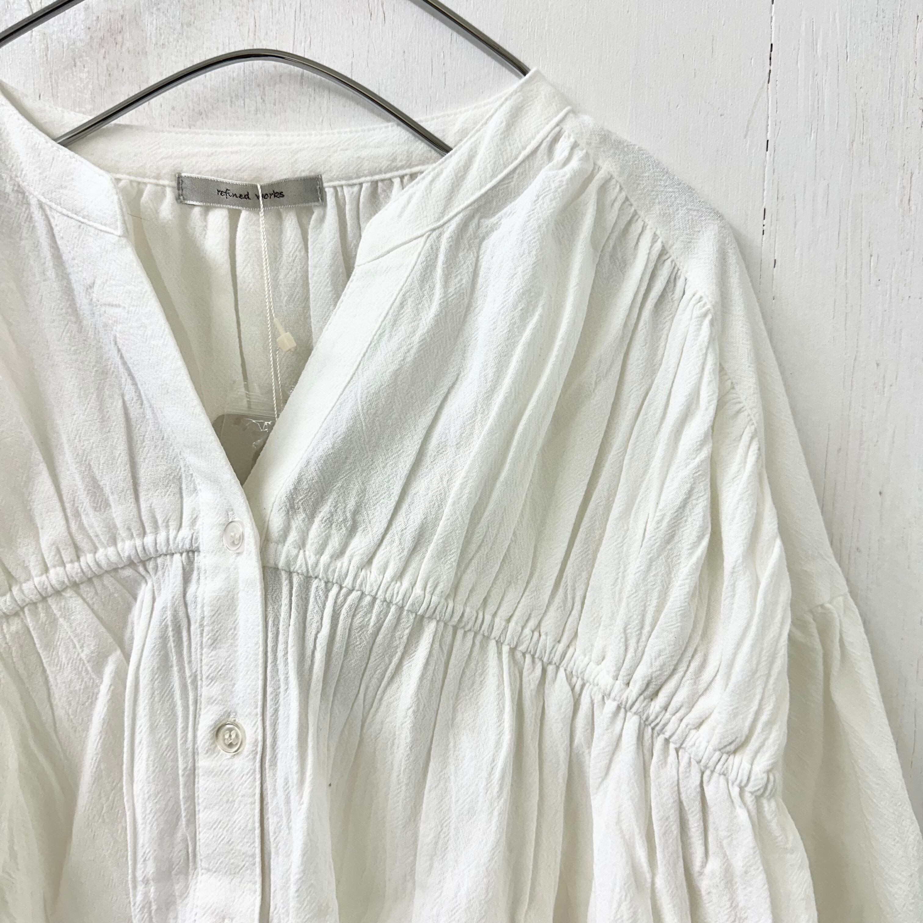 ウォッシャブル コットン バンド カラー ギャザー ワイド チュニック ブラウス / 065-59550