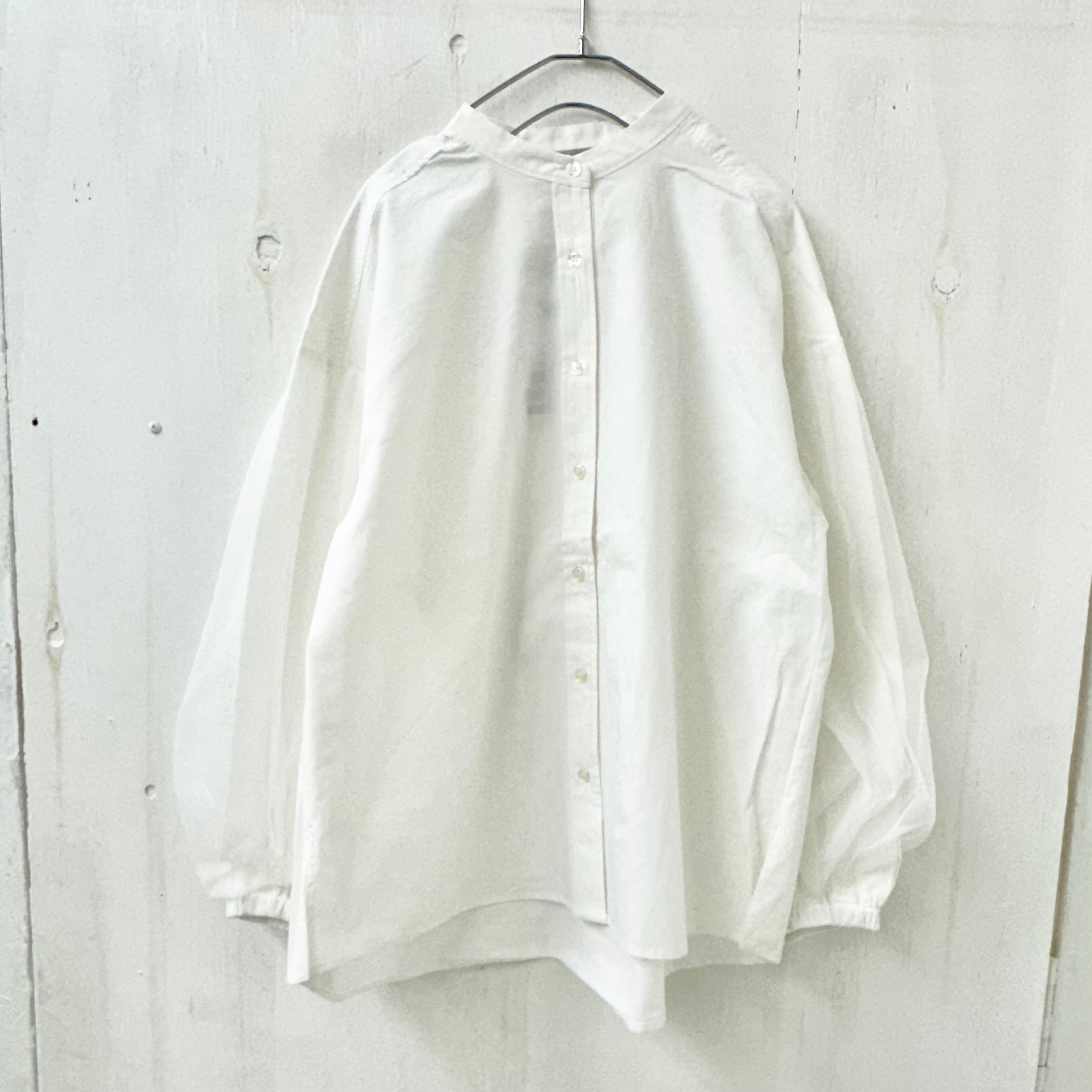 コットン ブロード 袖チュール レイヤード バンド カラー ブラウス / 065-59551