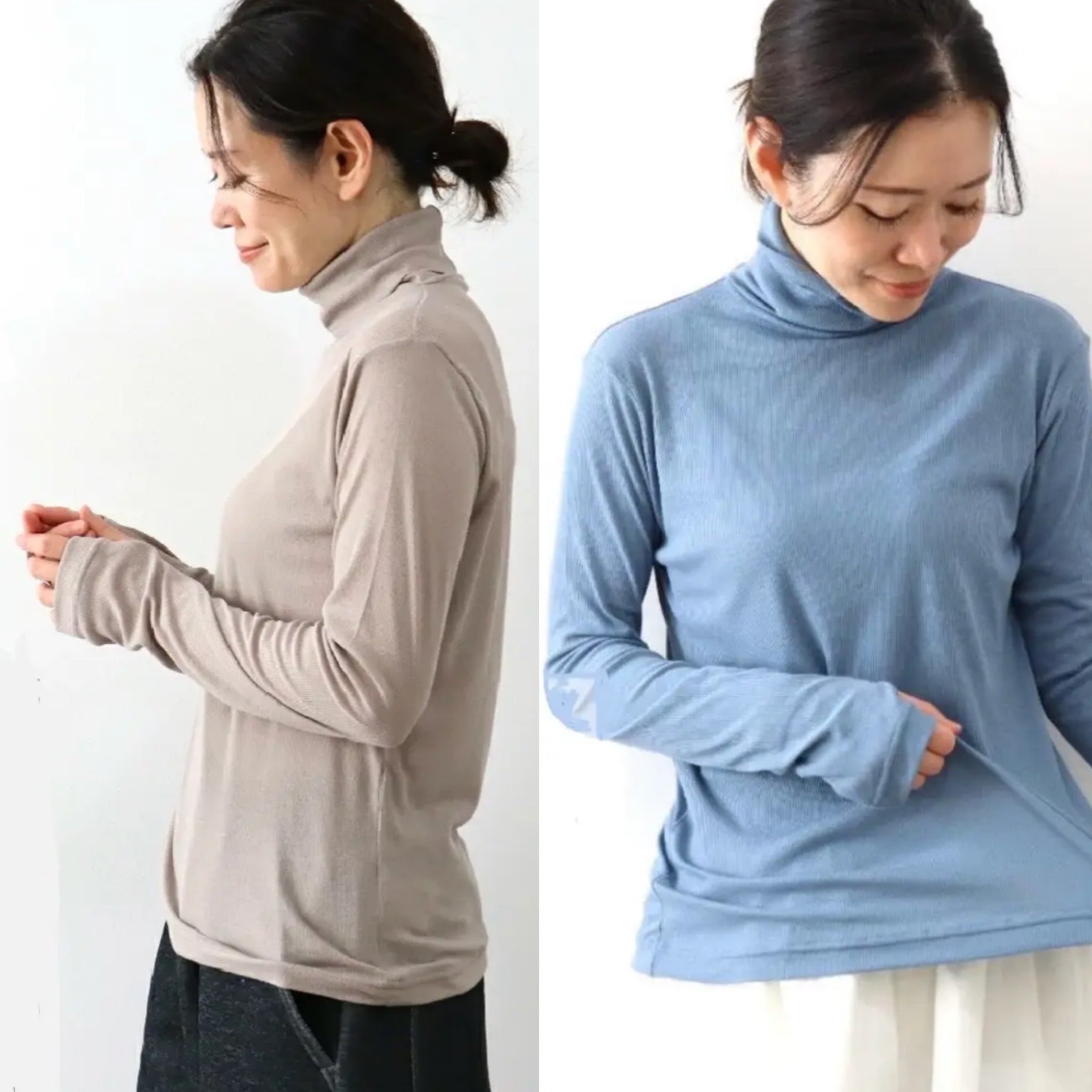 【harmonie / アルモニ】ふんわり シアー ストレッチリブ 指穴付き タートル ネック