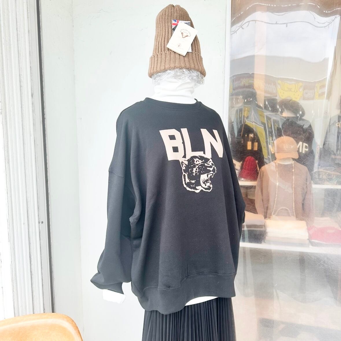 【STRIPE BALLOON】BIG シルエット 10oz メンズ トレーナー「BLN パンサー」ブラックxベージュ