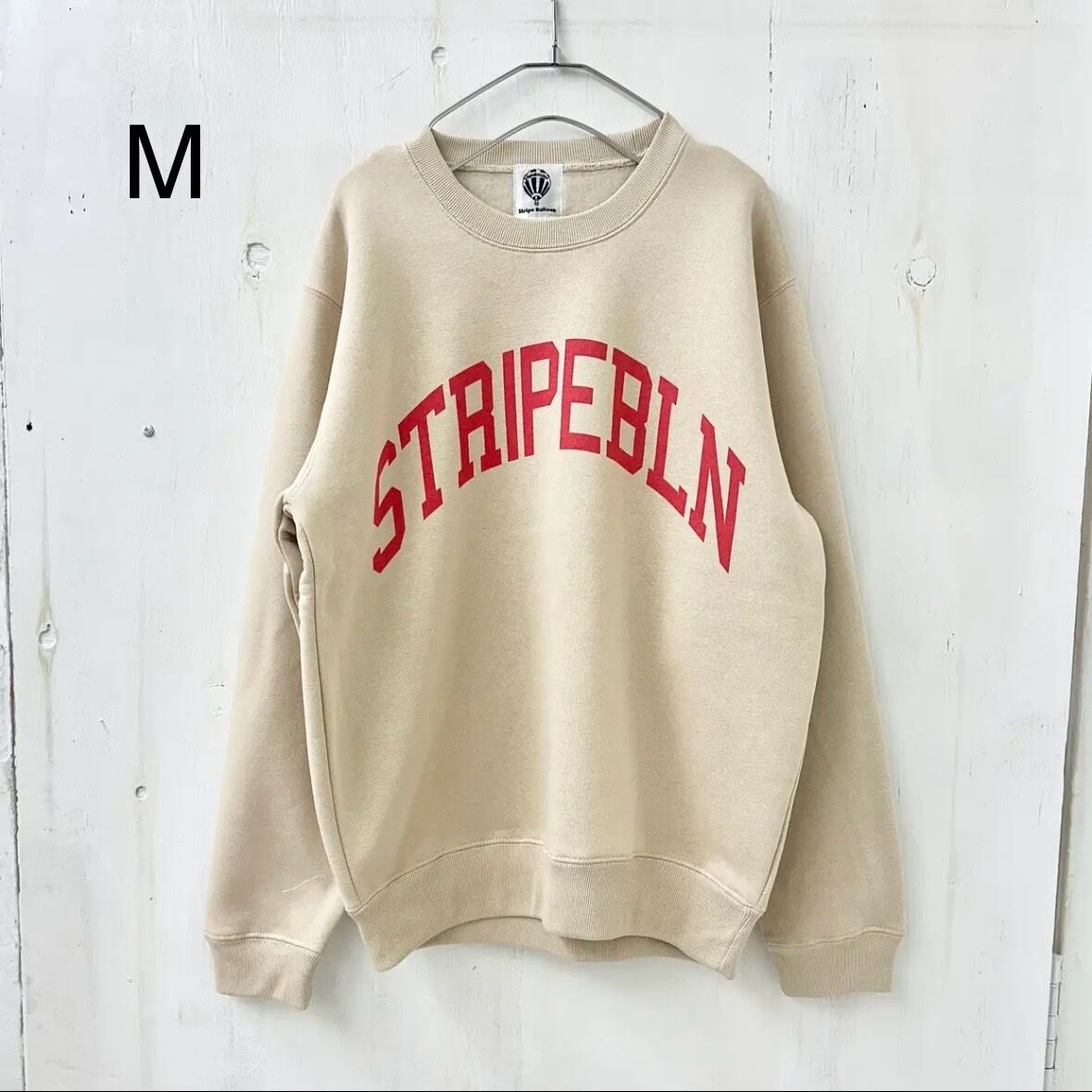 【STRIPE BALLOON】裏起毛 10oz T/C メンズ トレーナー「STRIPEBLN」サンドベージュXレッド 染み込み