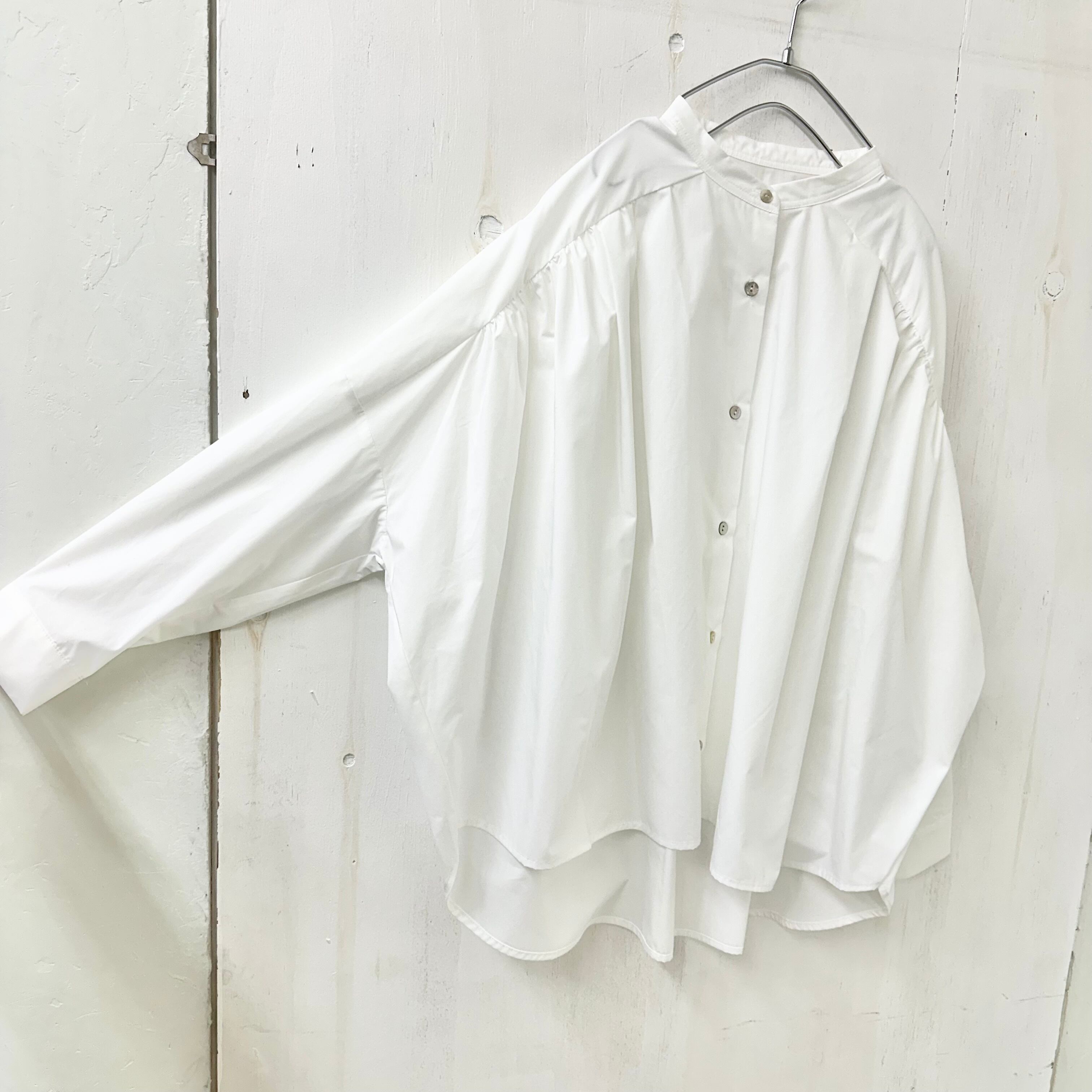 T/C バンド カラー バック ギャザー ブラウス / 733-82201