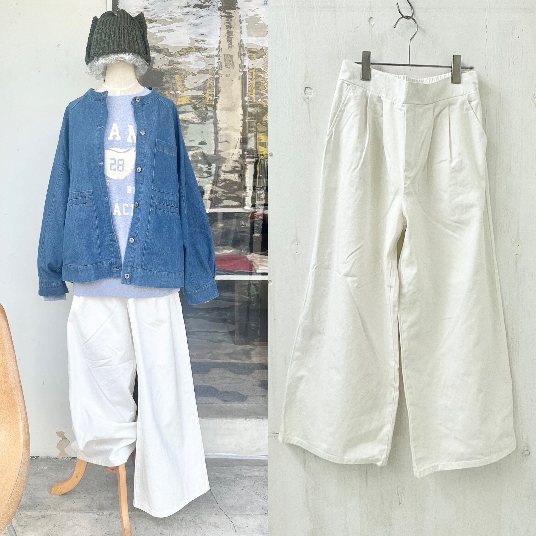 6.5oz 2タック デニム ワイド パンツ「ホワイト」 / 145-62701